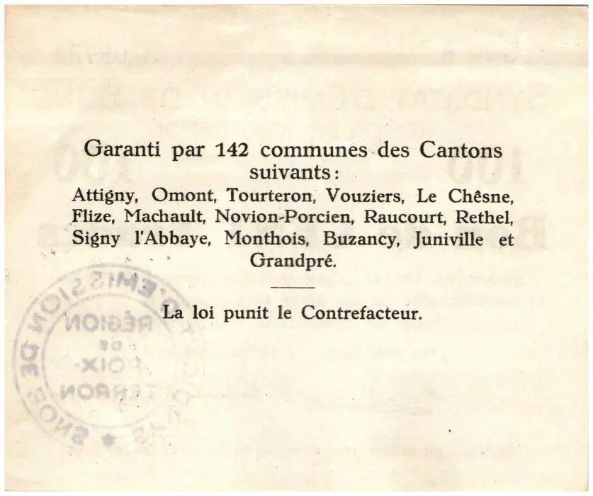 Les Billets des Communes et des Villes (Pir. 8.155)