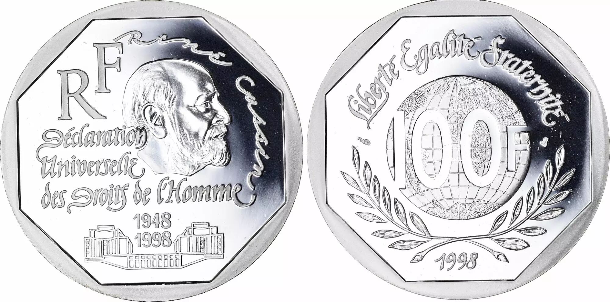 Accueil > Archivage > France 100 Francs René Cassin - 1989 - Belle Epreuve - Argent - avec certificat