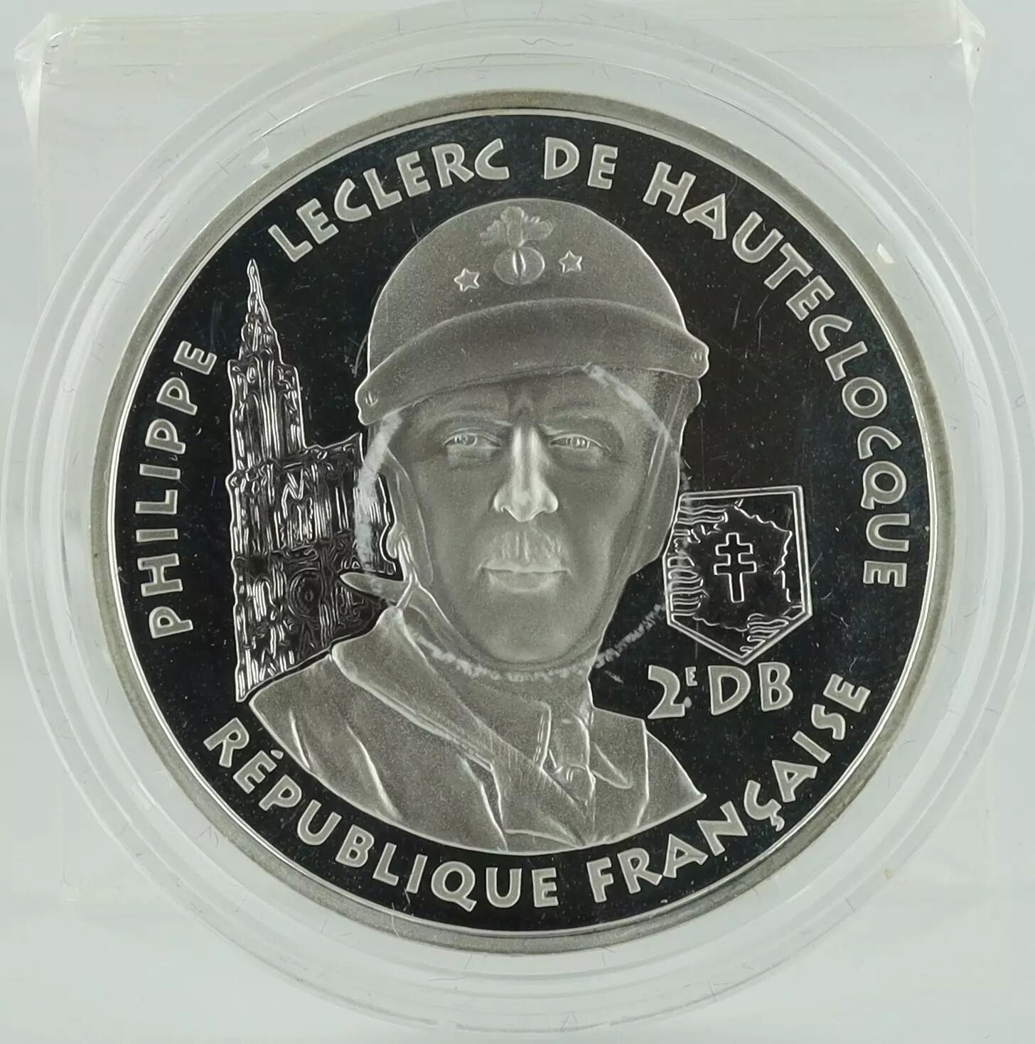 This French 100 Francs silver commemorative coin, issued in 1994, pays tribute to Philippe Leclerc de Hauteclocque and the 50th anniversary of the D-Day landings and the liberation of France. The coin is sold without its original packaging or certificate.