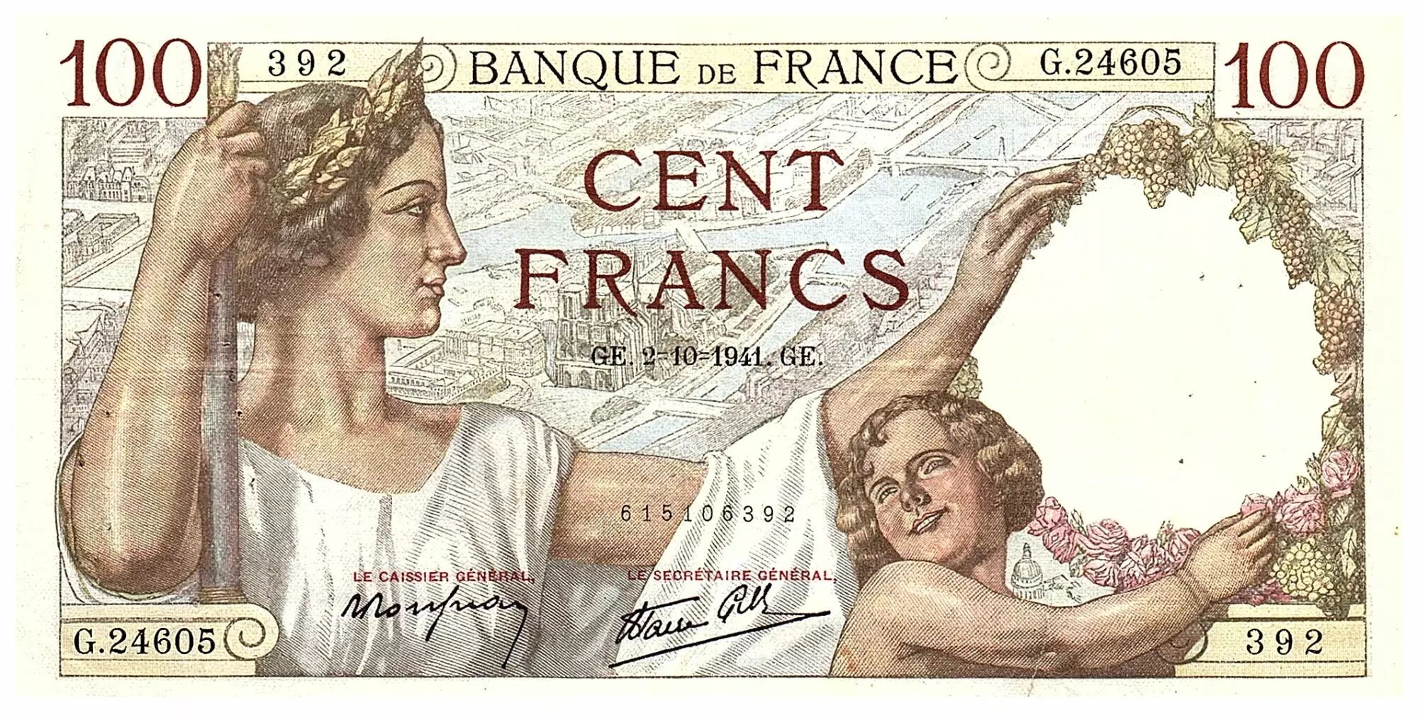 Home > > France 100 Francs Sully - 02.10.1941 - Serial G.24605 - Fay.26.58