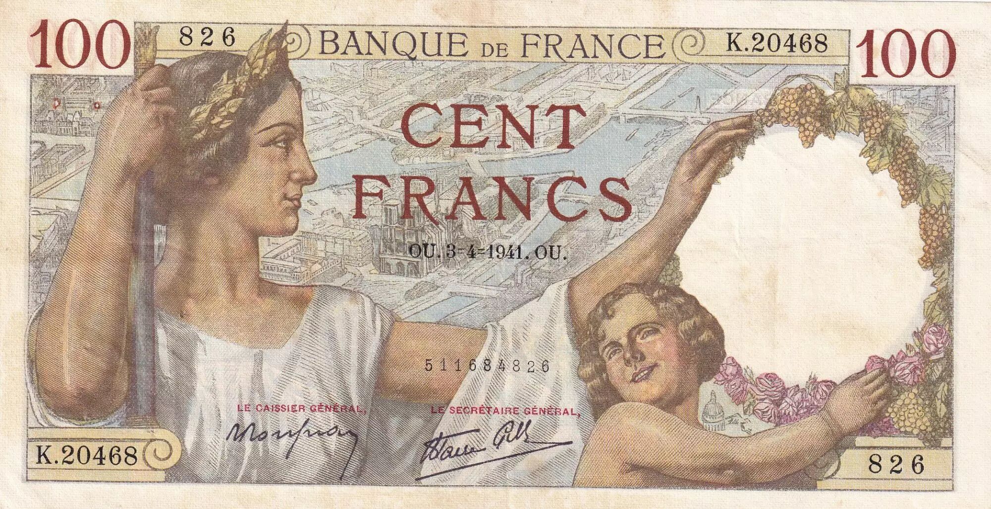 Billet France 100 Francs Sully - 03-04-1941 - Série K.20468