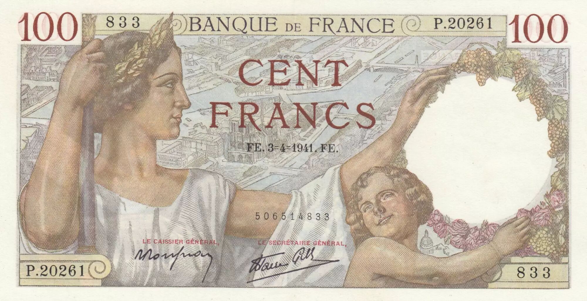 Billet France 100 Francs - Sully - 03-04-1941 - Série P.20261