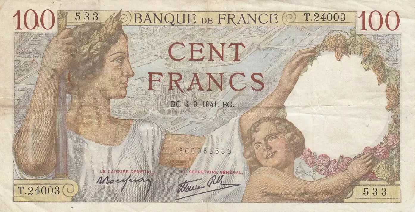 Billet France 100 Francs Sully - 04-09-1941 - Série T.24003