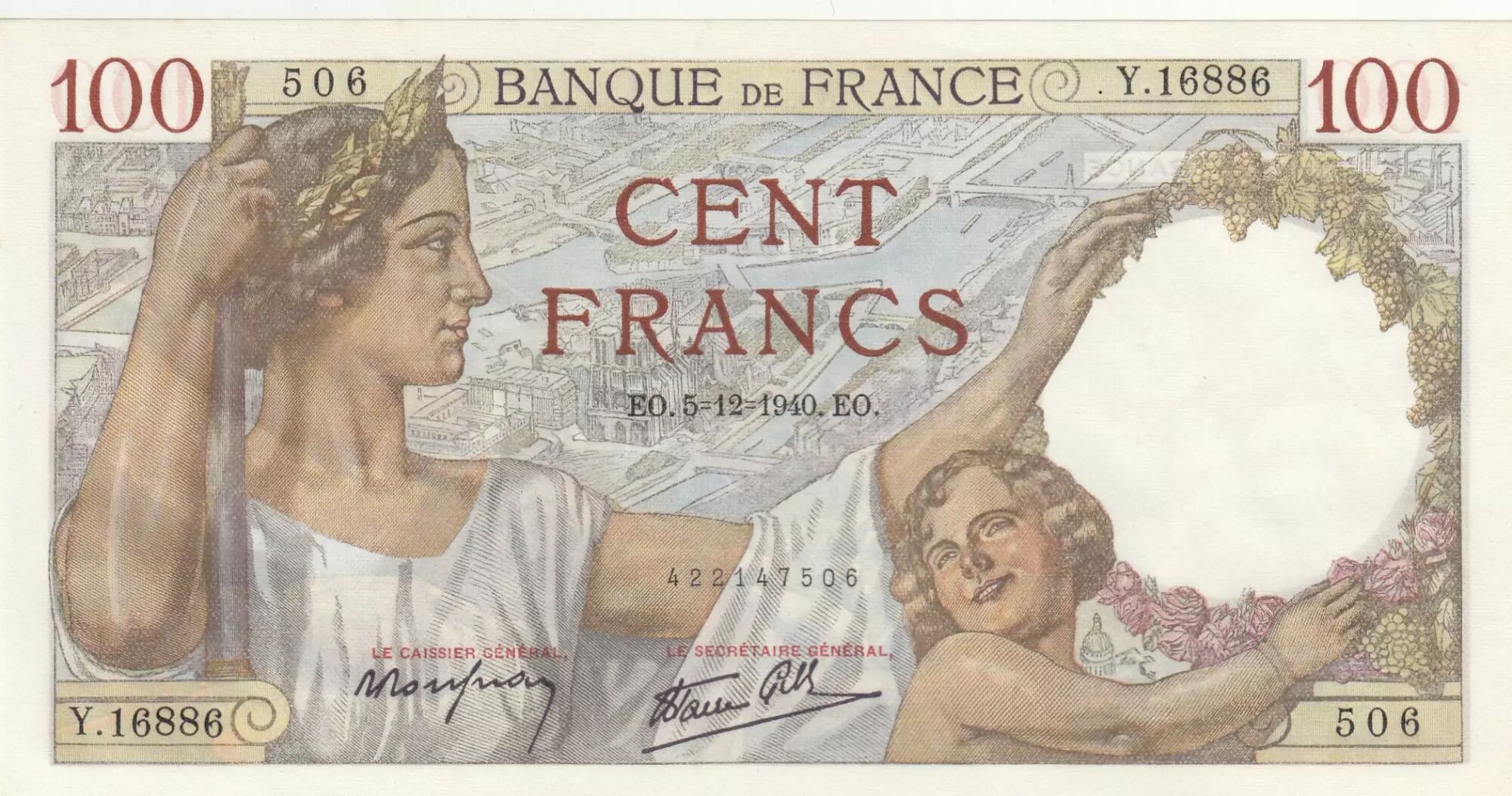 Home > > France 100 Francs - Sully - 05-12-1940 - Serial Y.16886