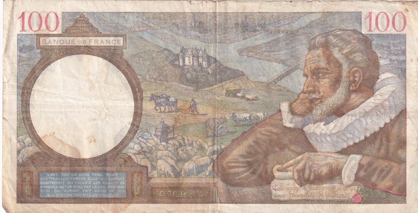 Banknote France 100 Francs Sully - 08-01-1942 - Serial V.27464