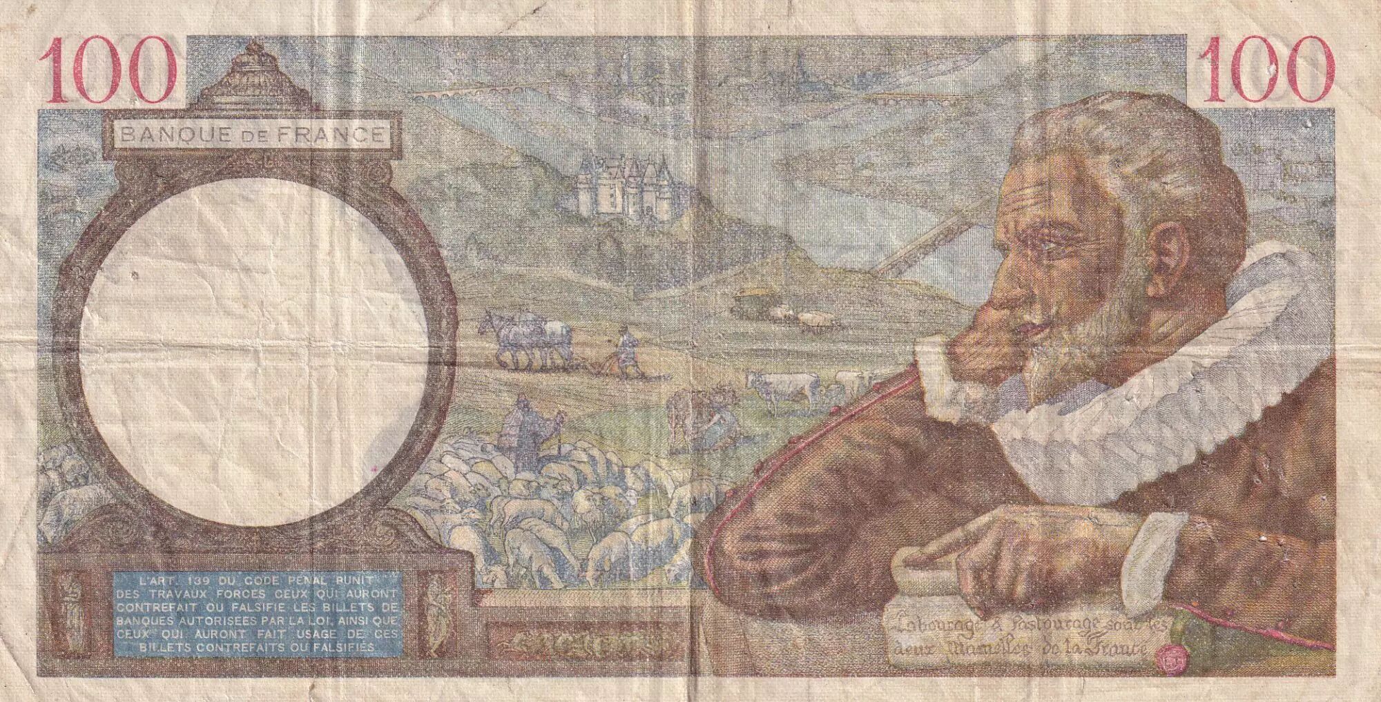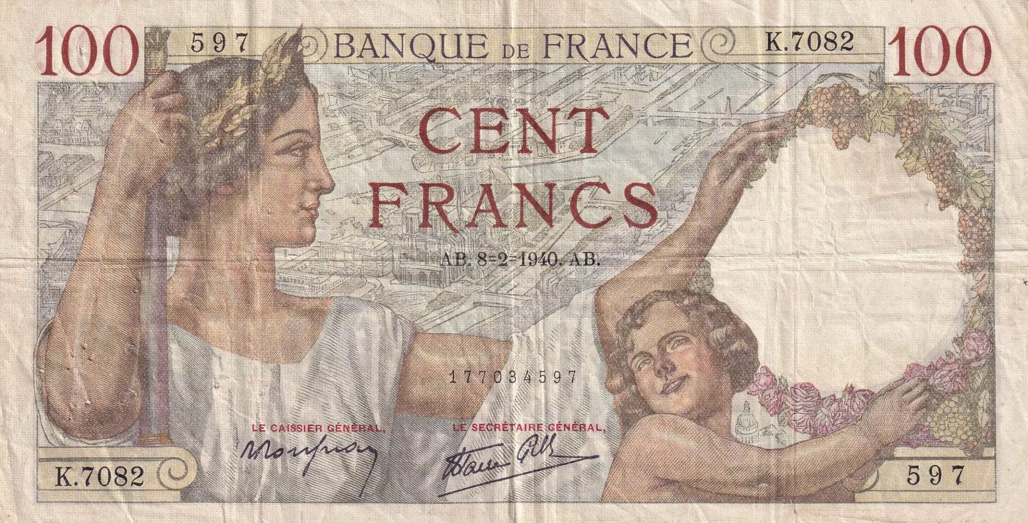 Accueil > Billets Français > Billets Banque de France > Billets 100 Francs > Sully type 1939 (1939-1942) > France 100 Francs - Sully - 08-02-1940 - Série K.7082 - F.26.22