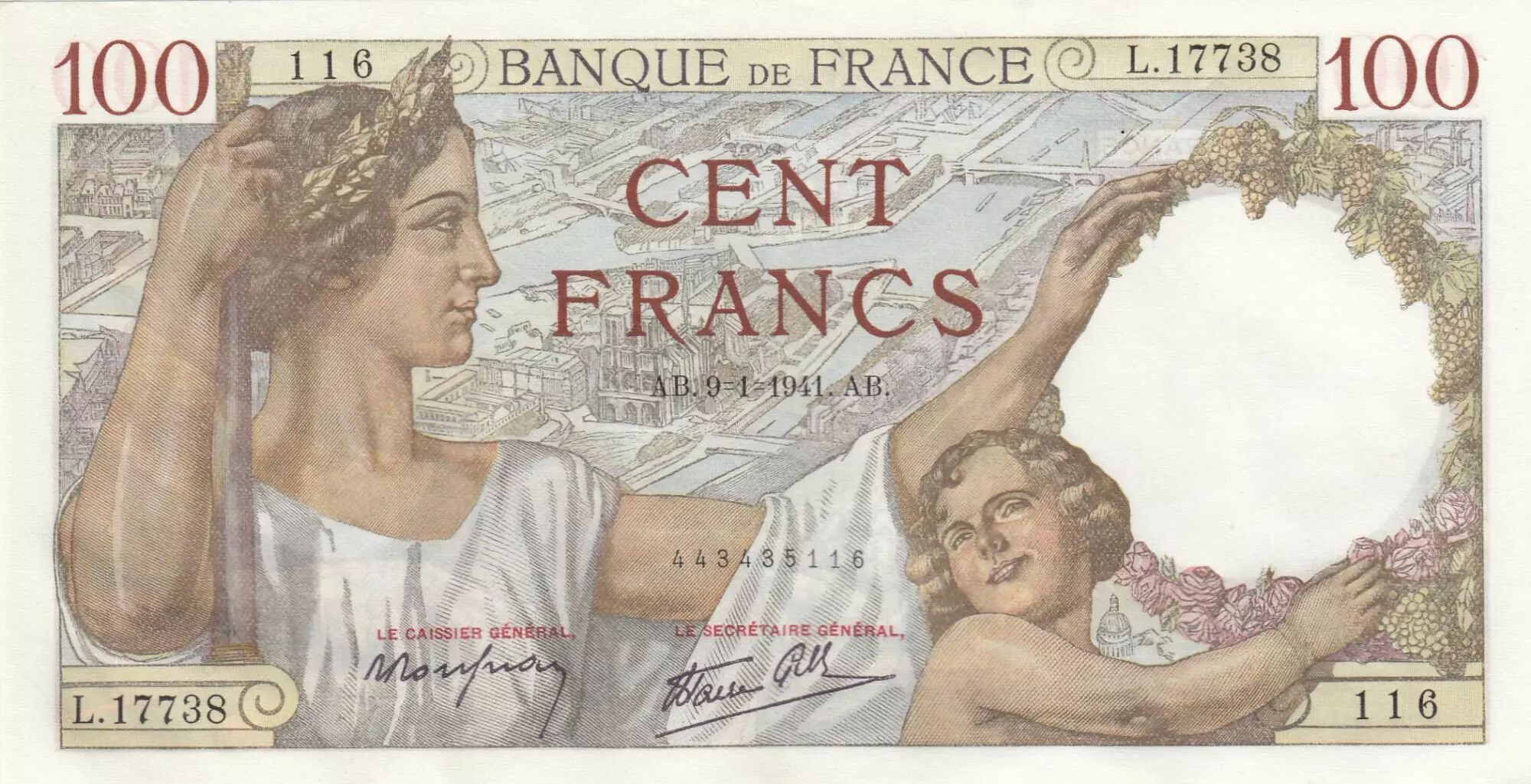 Billet France 100 Francs - Sully - 09-01-1941 - Série L.17738