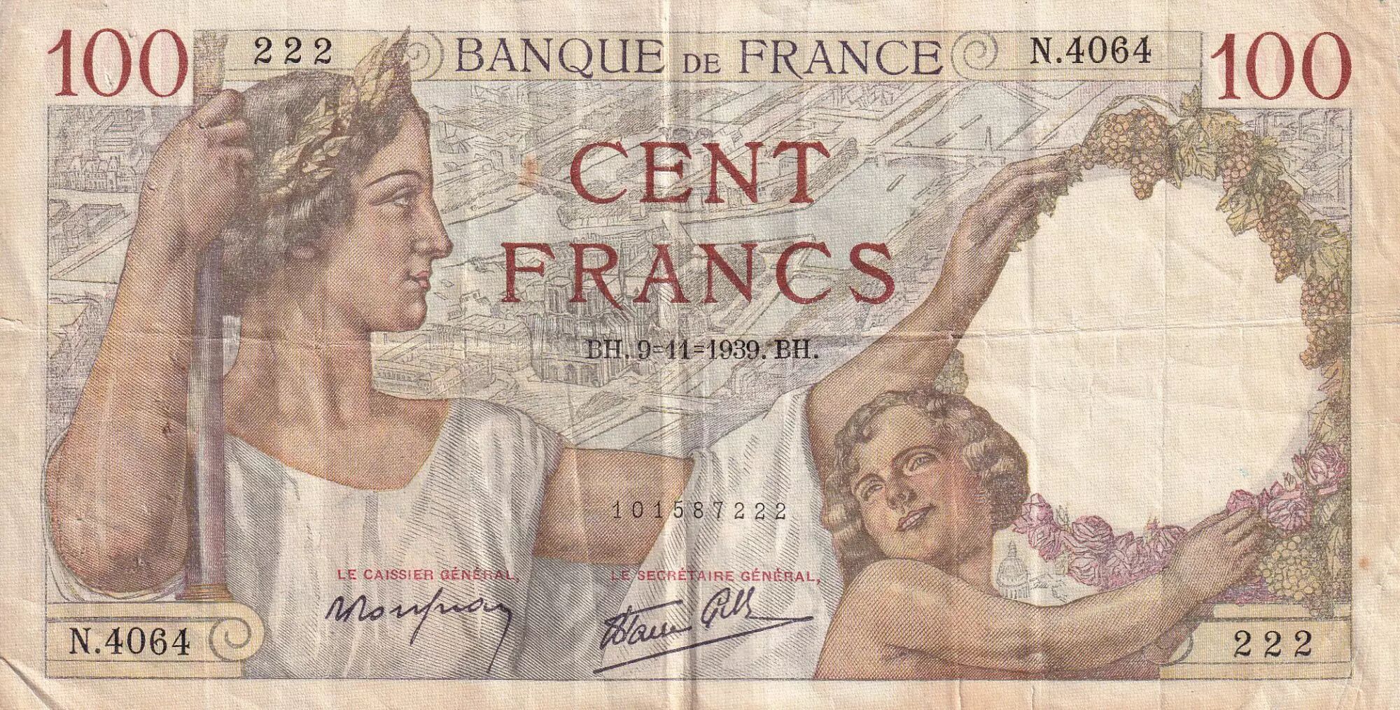 Accueil > Archivage > France 100 Francs - Sully - 09-11-1939 - Série N.4064 - TB+ - F.26.14