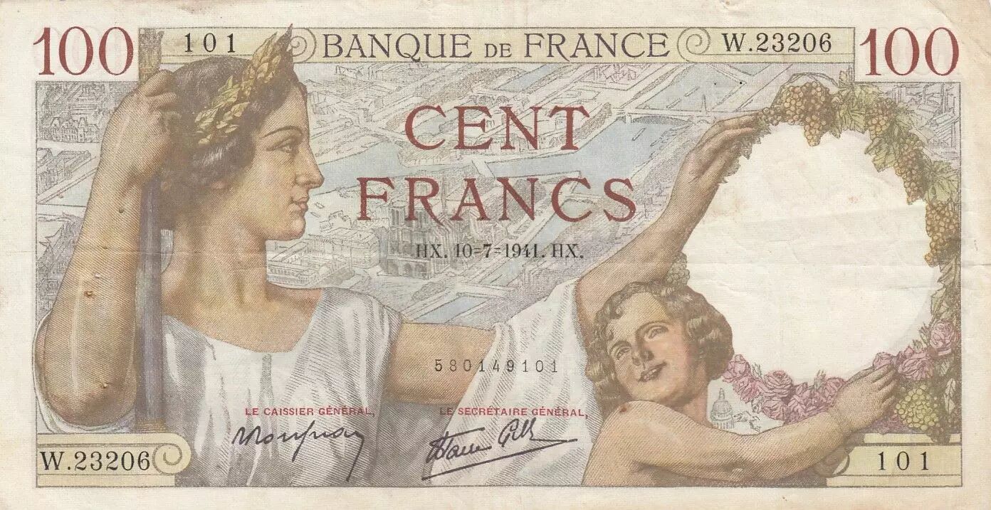 Accueil > Archivage > France 100 Francs Sully - 10-07-1941 - Série W.23206