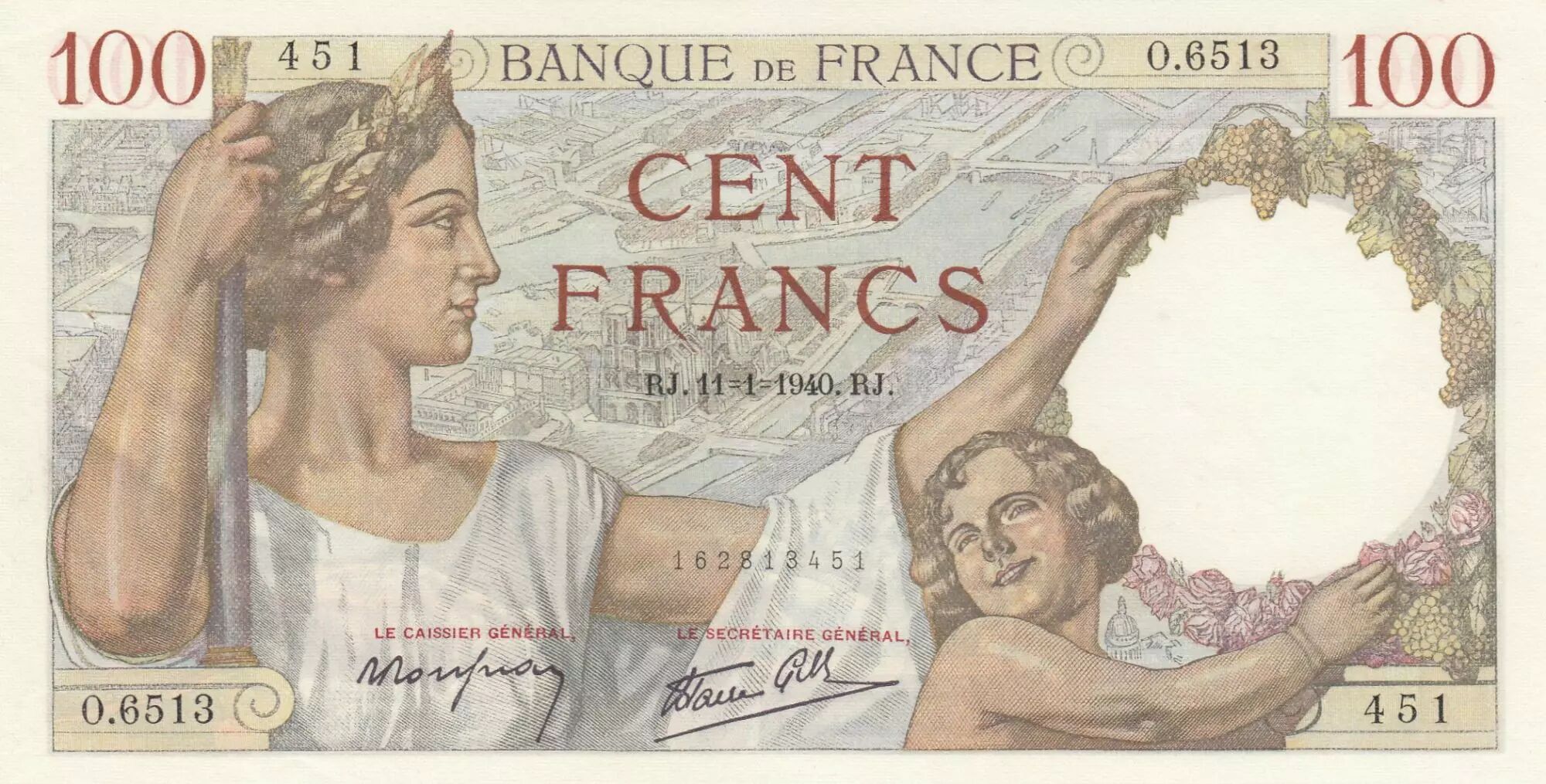 Billet France 100 Francs - Sully - 11-01-1940 - Série O.6513