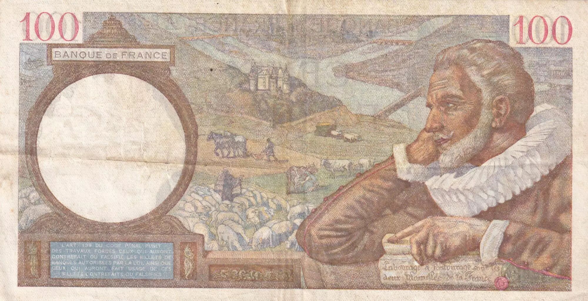 Banknote France 100 Francs - Sully - 12-02-1942 - Serial E.28636