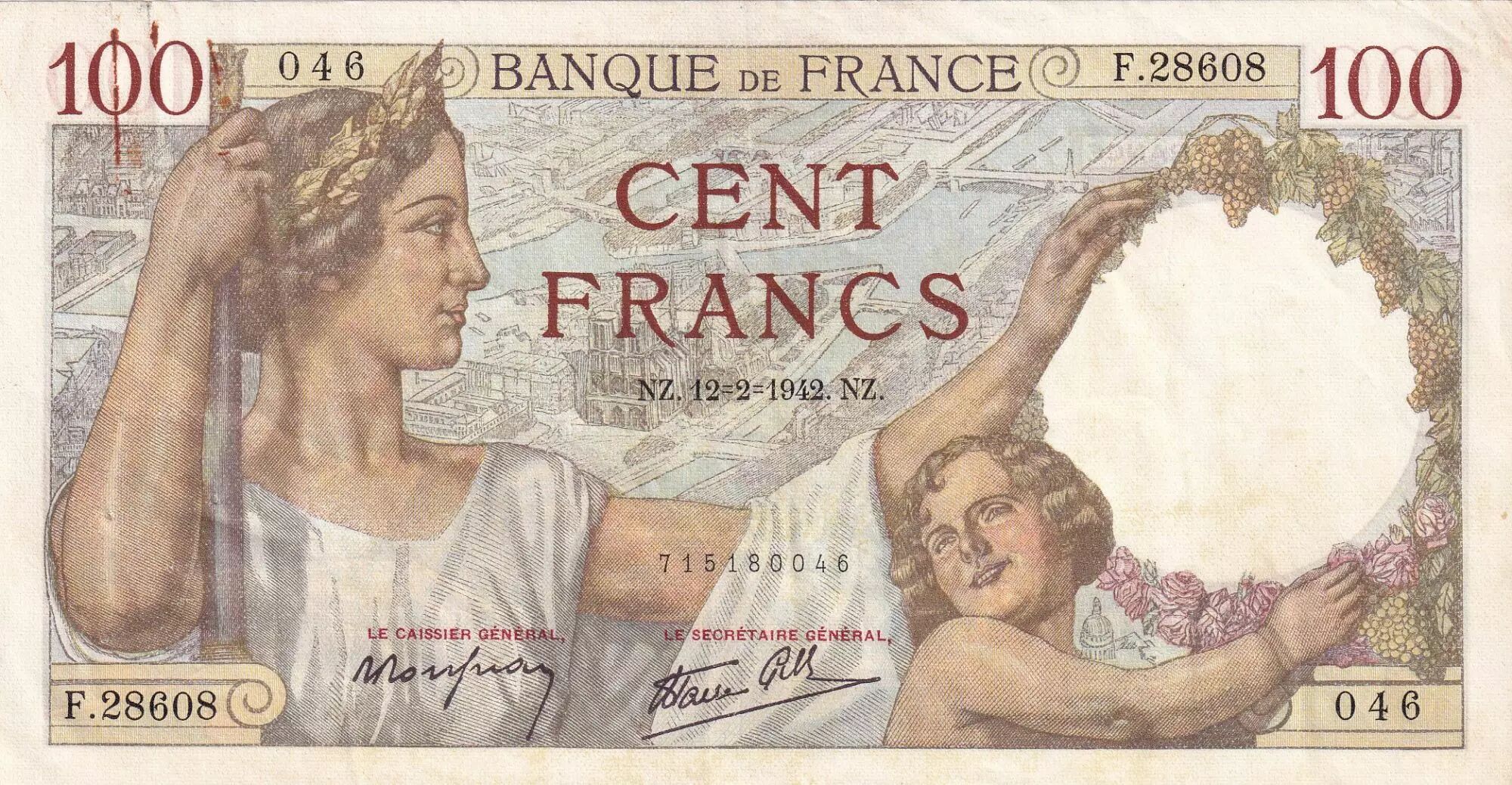 Billet France 100 Francs Sully - 12-02-1942 - Série F.28608