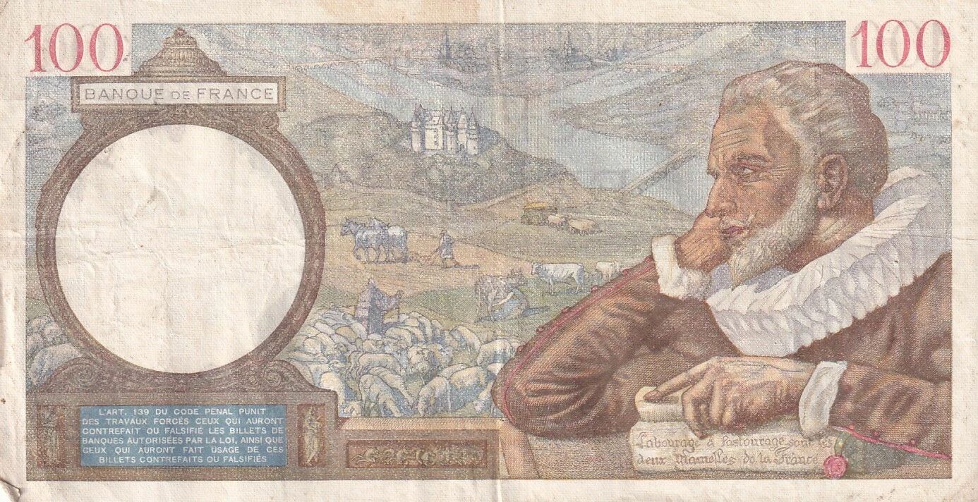 The 100 Francs Sully banknote, issued on October 12, 1939, belongs to series Y.2721. It is a banknote from the Banque de France, representing a face value of 100 francs.