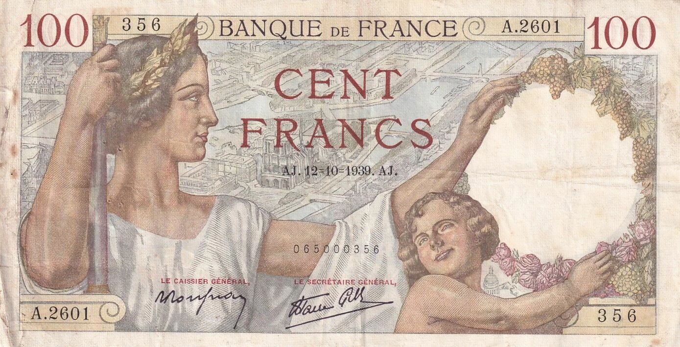 Le billet de 100 Francs Sully, émis le 12 octobre 1939, appartient à la série A.2601. Il s'agit d'un billet de la Banque de France, représentant une valeur nominale de 100 francs.