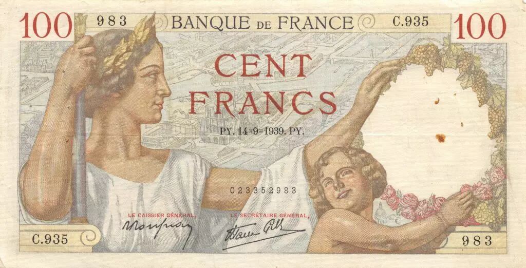 Accueil > Archivage > archivage-Archivage > France 100 Francs Sully - 14-09-1939 Série C.935 - TTB