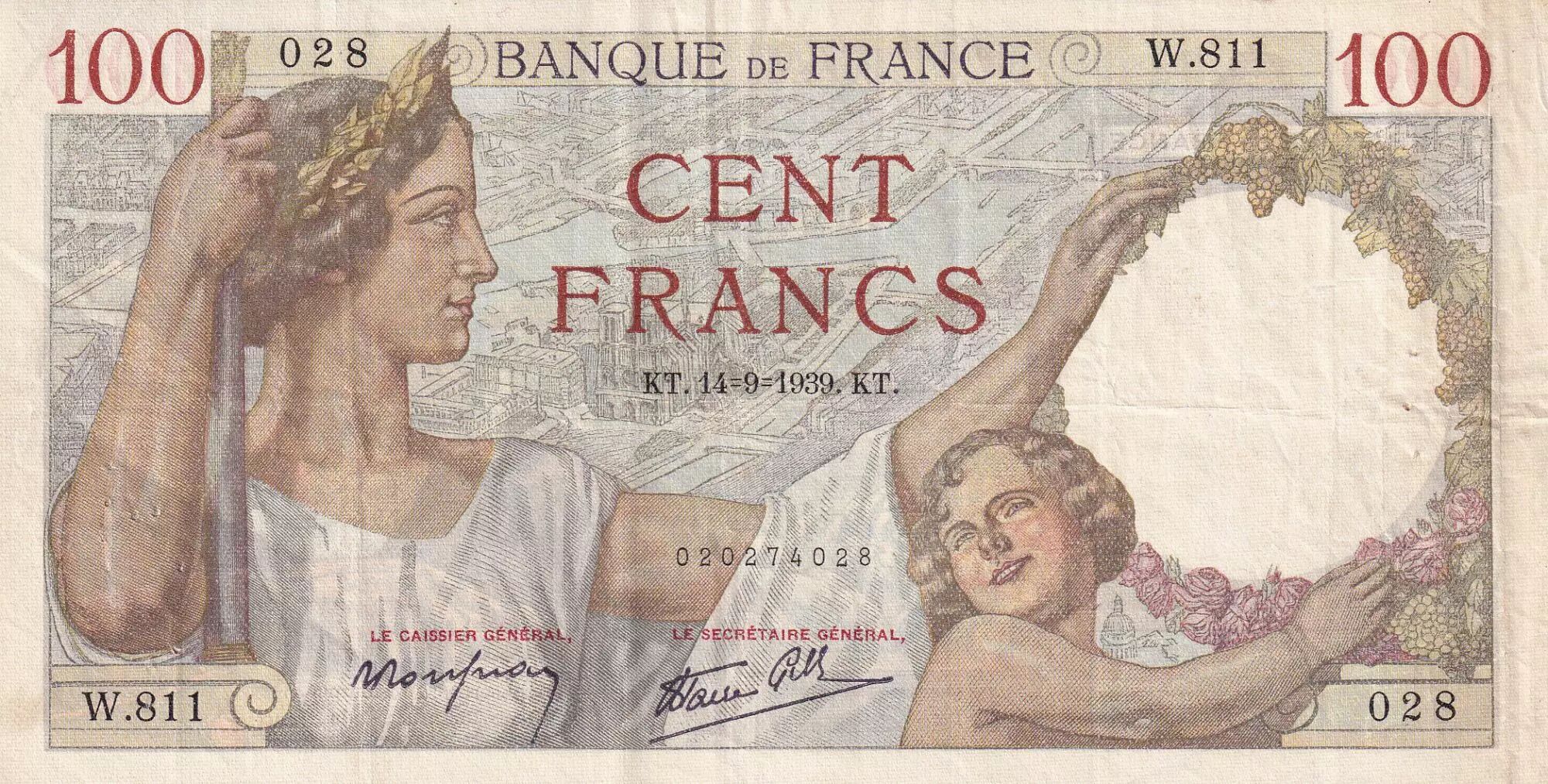 Accueil > Archivage > France 100 Francs - Sully - 14-09-1939 - Série W.811 - F.26.06
