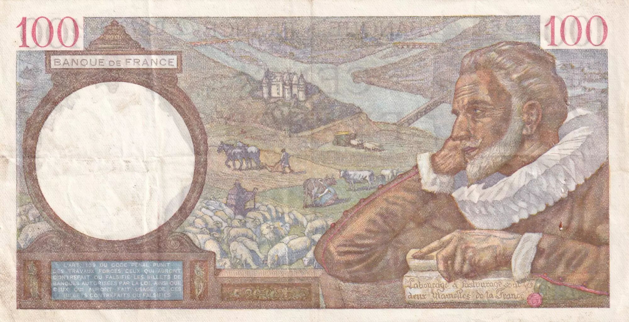 Banknote France 100 Francs Sully - 18-12-1941 - Serial U.27288