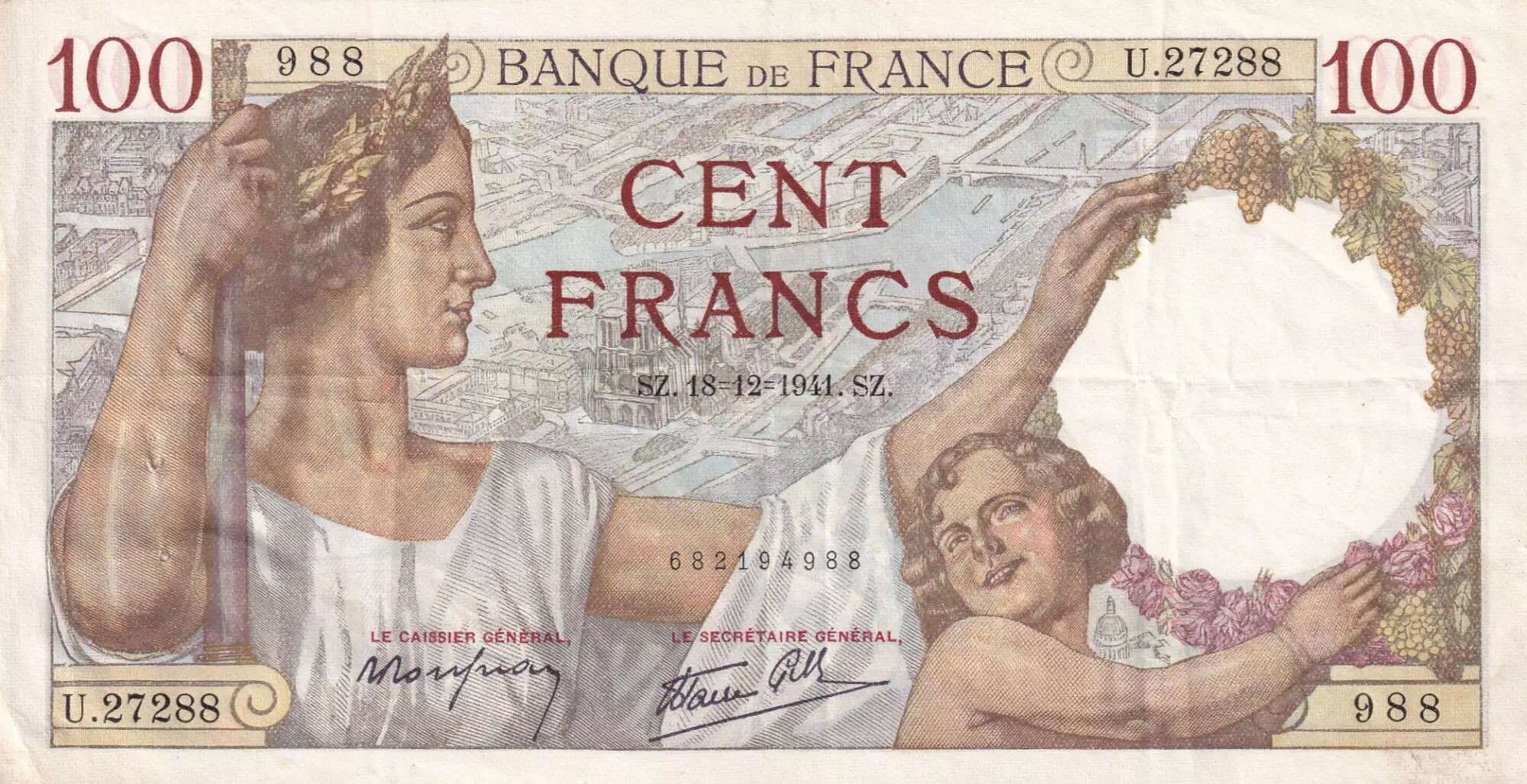 Billet France 100 Francs Sully - 18-12-1941 - Série U.27288