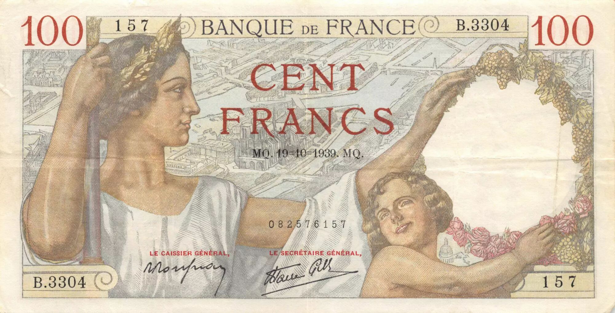 Accueil > Archivage > France 100 Francs Sully - 19-10-1939 Série B.3304 - TTB