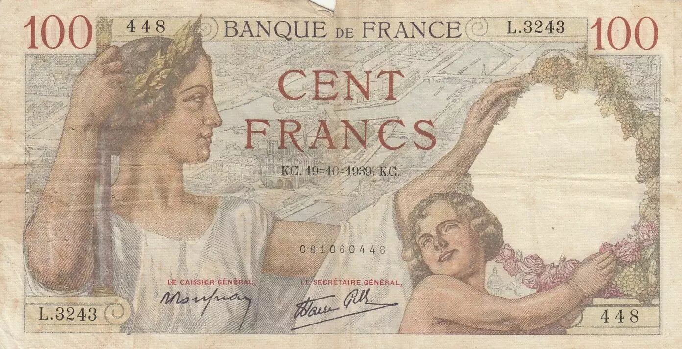 Accueil > Archivage > France 100 Francs Sully - 19-10-1939 - Série L.3243