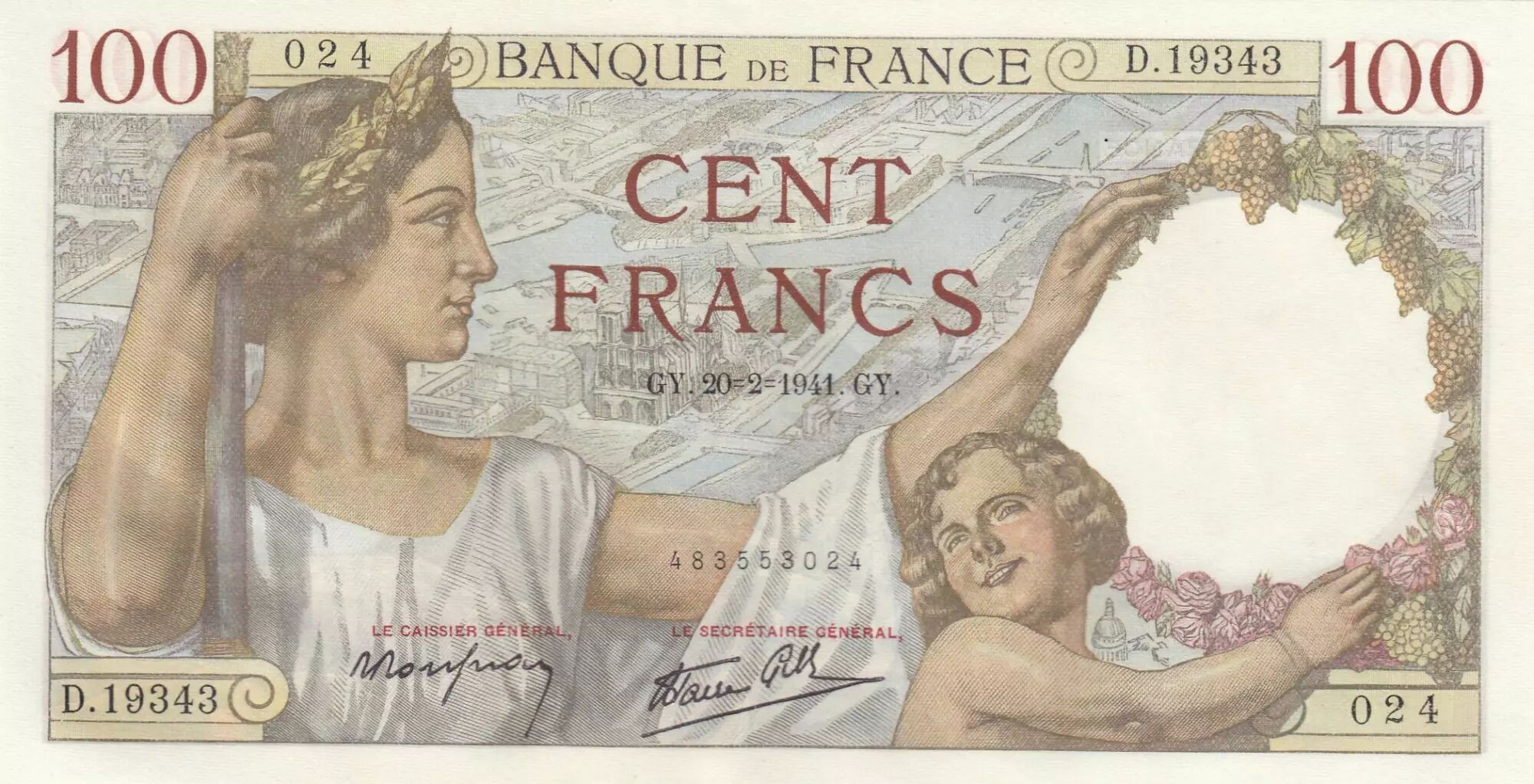 Billet France 100 Francs - Sully - 20-02-1941 - Série D.19343