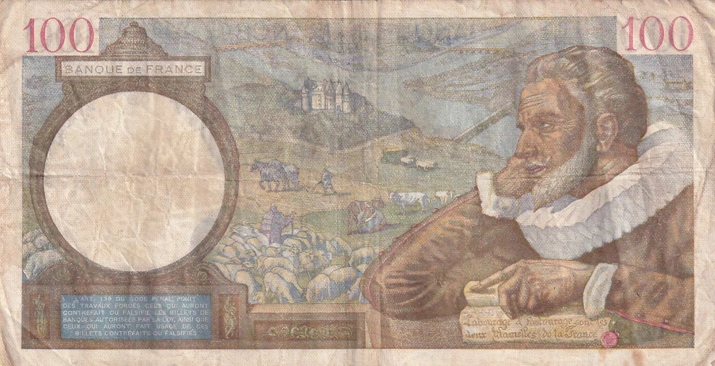 L'écriture utilisée sur le billet est latine. On y trouve l'inscription "100 BANQUE DE FRANCE 100" ainsi que la mention "CENT FRANCS".
