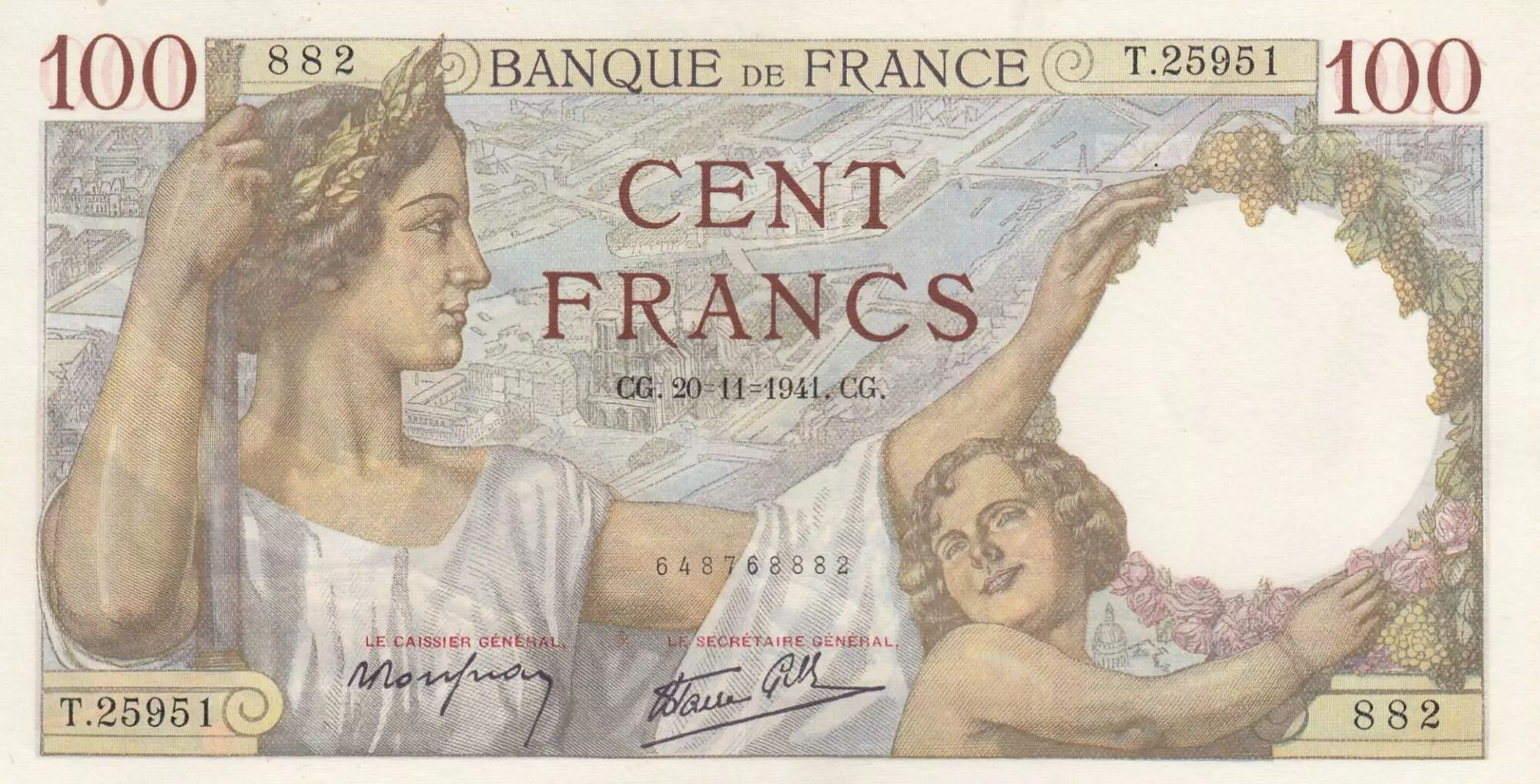 Billet France 100 Francs - Sully - 20-11-1941 - Série T.25951