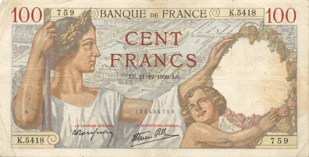 Accueil > Archivage > France 100 Francs Sully - 21-12-1939 Série K.5418 - TTB