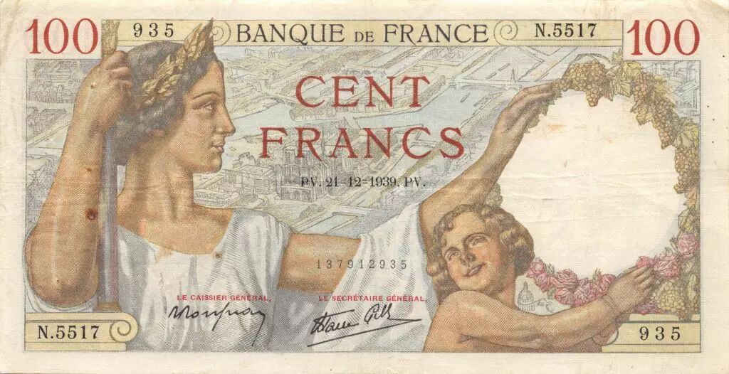 Accueil > Archivage > France 100 Francs Sully - 21-12-1939 Série N.5517 - TTB