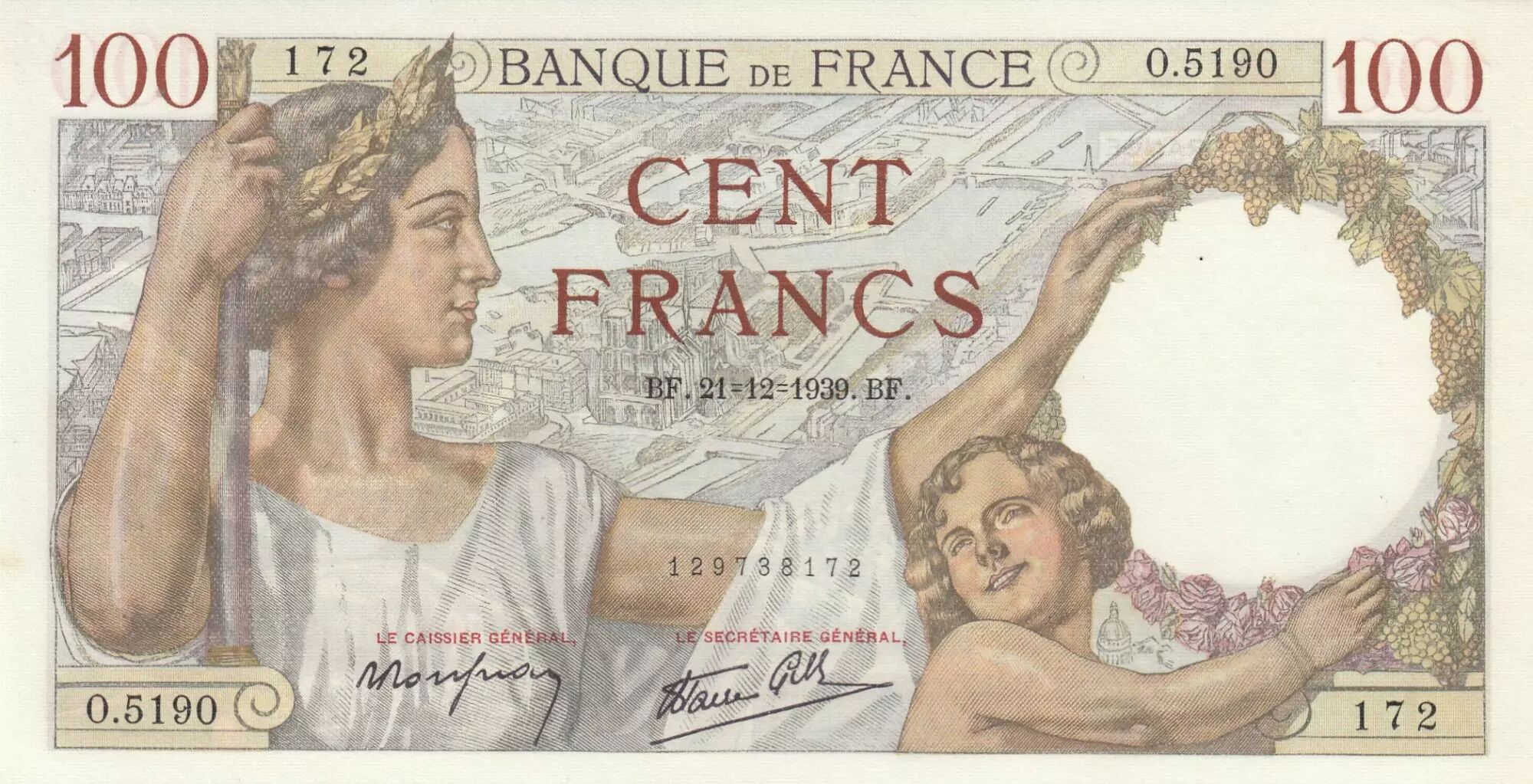 Accueil > Archivage > archivage-Billets Français > France 100 Francs - Sully - 21-12-1939 - Série O.5190