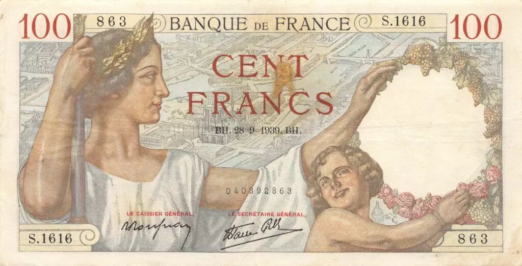 Accueil > Archivage > France 100 Francs Sully - 28-09-1939 Série S.1616 - TTB