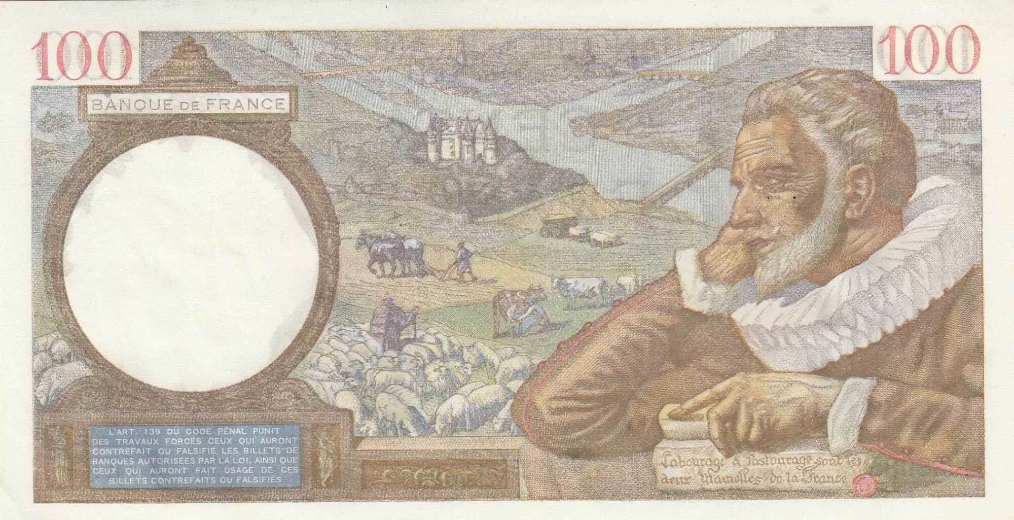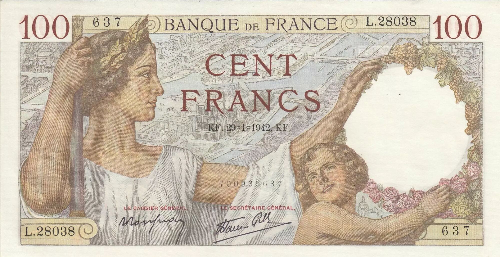 Banknote France 100 Francs - Sully - 29-01-1942 - Serial L.28038