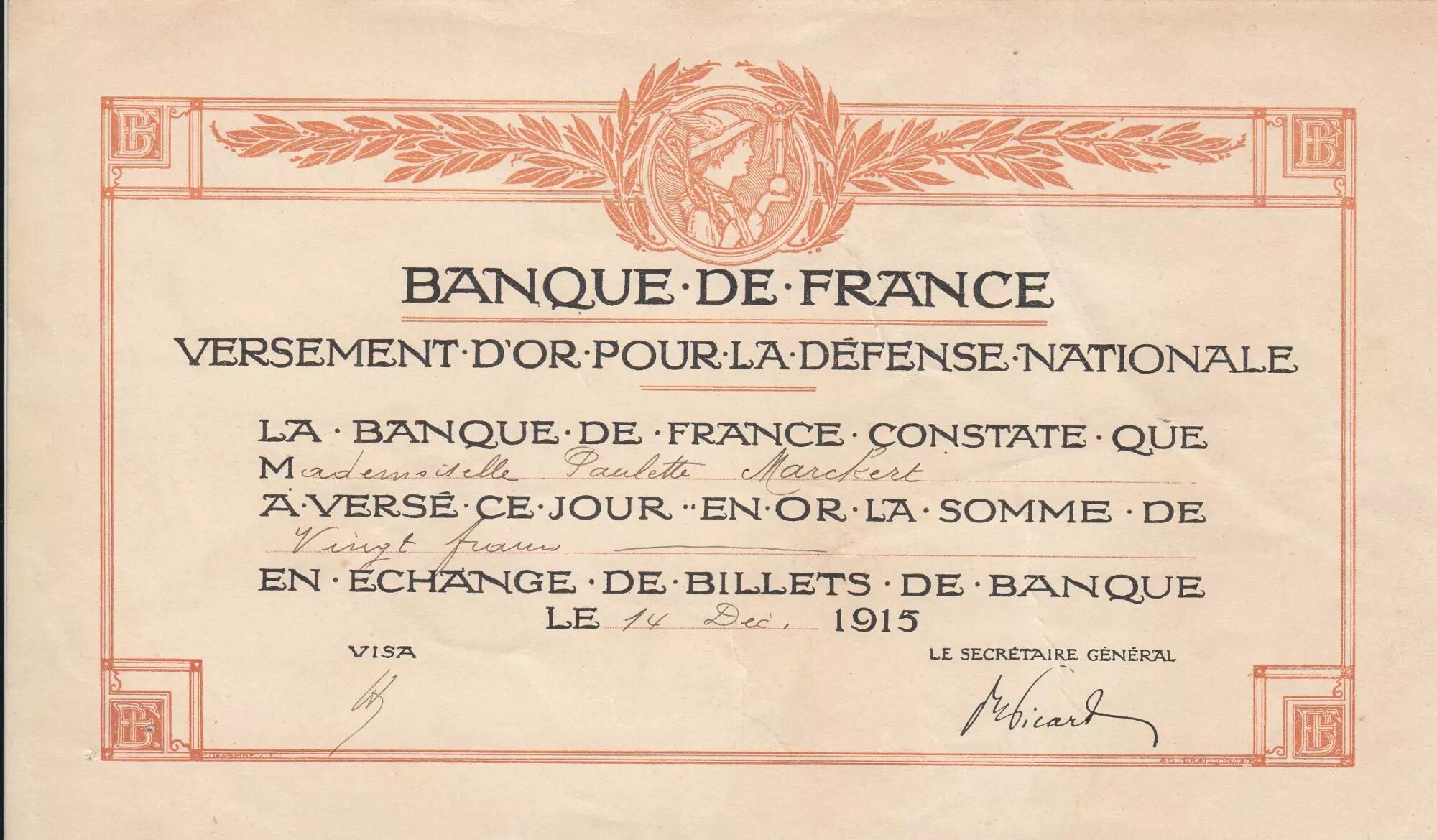 Home > > France 100 Francs - Versement d'or pour la défense nationale - 14-12-1915 - VF+