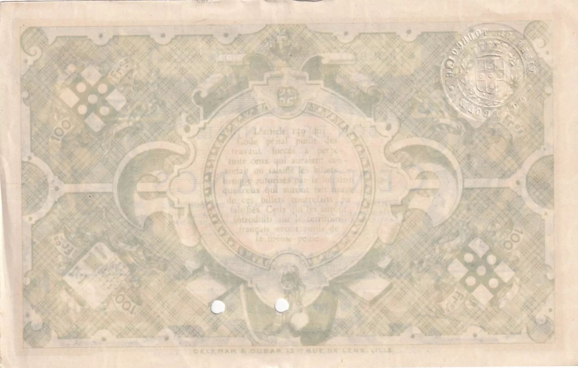 The condition of this banknote is marked by traces of cancellation by perforation, indicating that it was withdrawn from circulation after its use. These perforations were a common method to prevent the reuse of canceled banknotes.