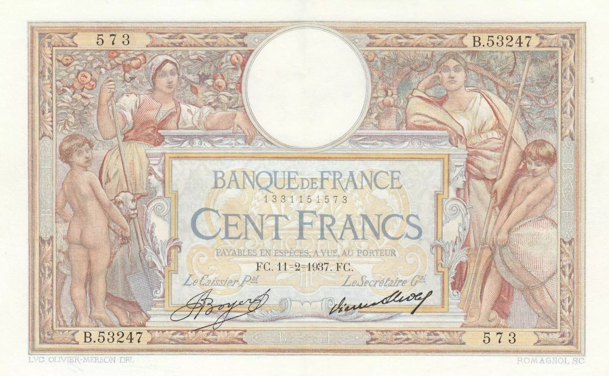 1 fold, 1 pin, stains on reverse