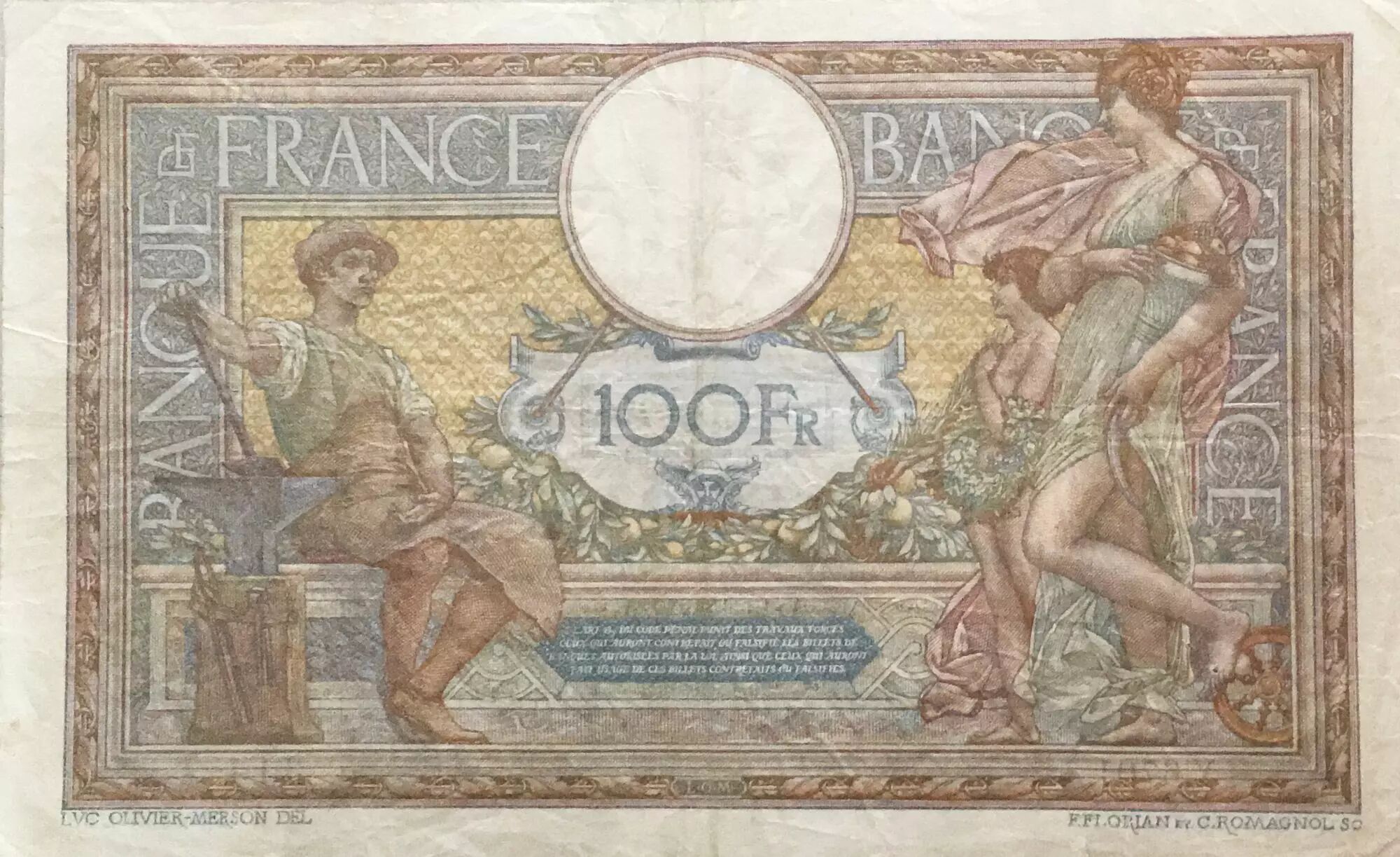Home > > France 100 Francs Women and childs - 15-01-1920 Serial Y.6701 - VF