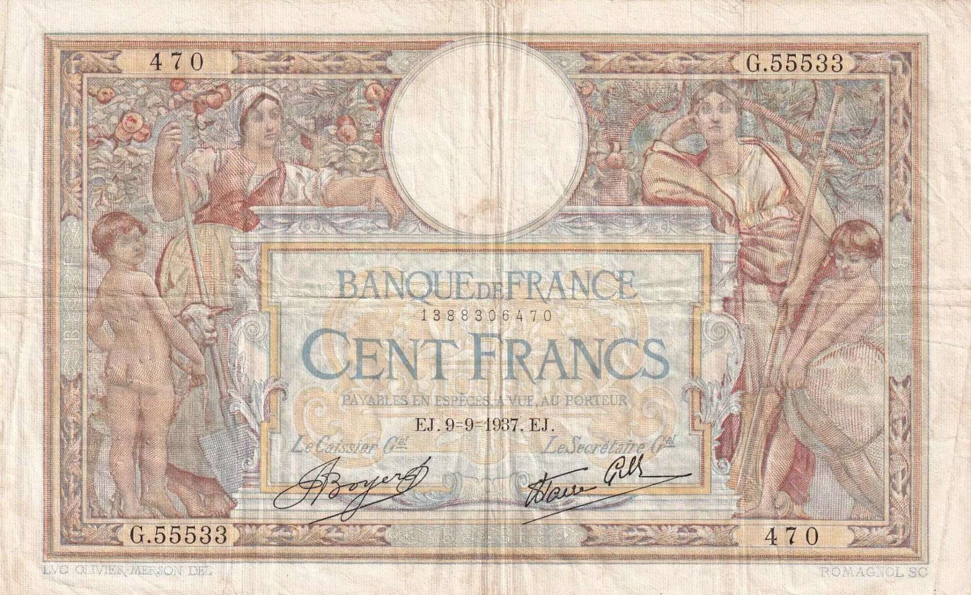 Home > > France 100 Francs Women with child - 09-09-1937 - Serial G.55533