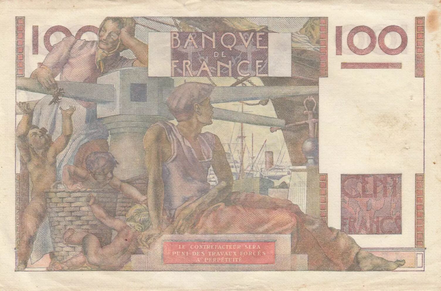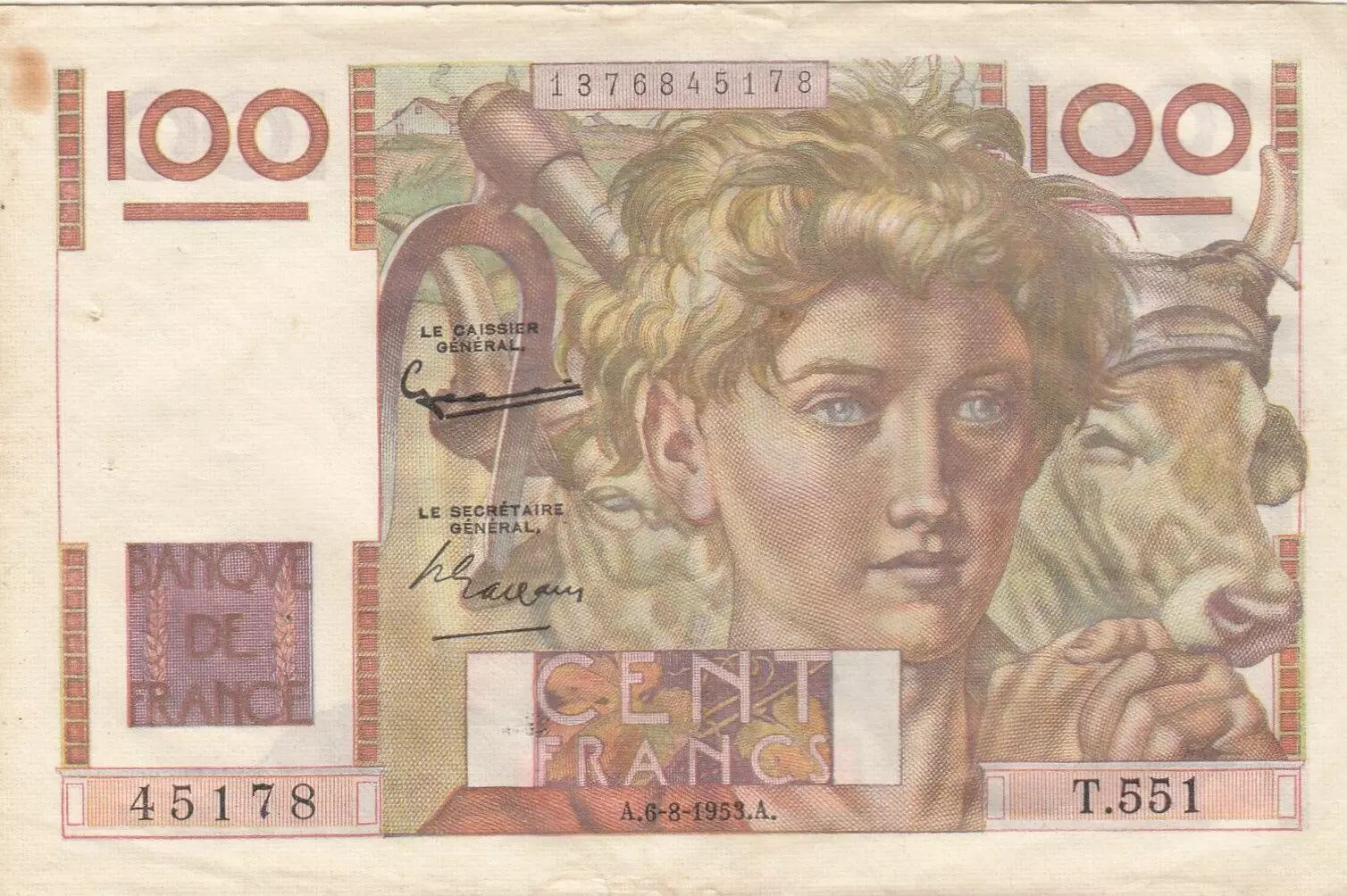 Banknote France 100 Francs - Young Farmer - 06-08-1953 - Serial T.551