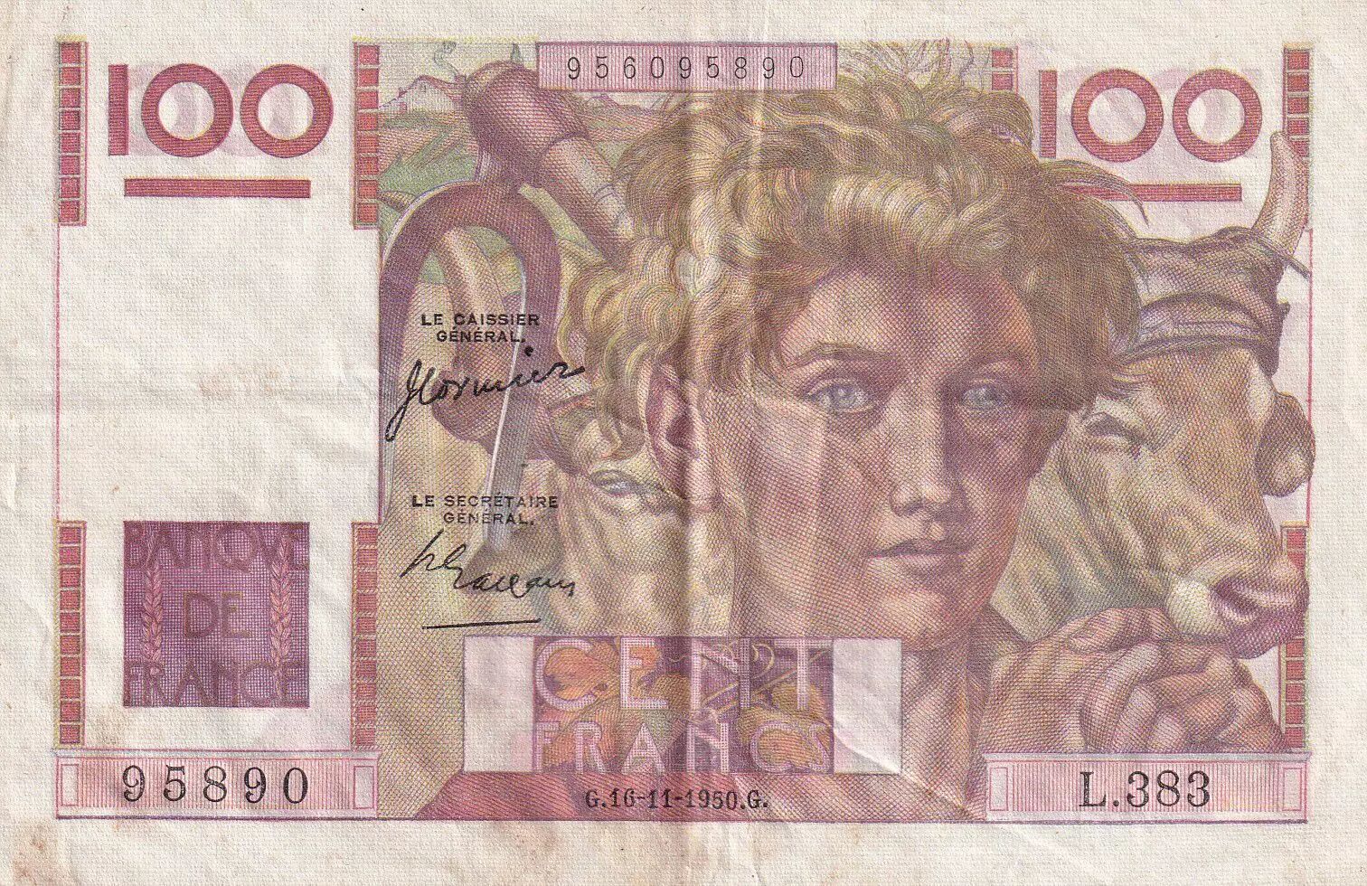 Home > > France 100 Francs - Young farmer- 16-11-1950 - Serial L.383 - P.128