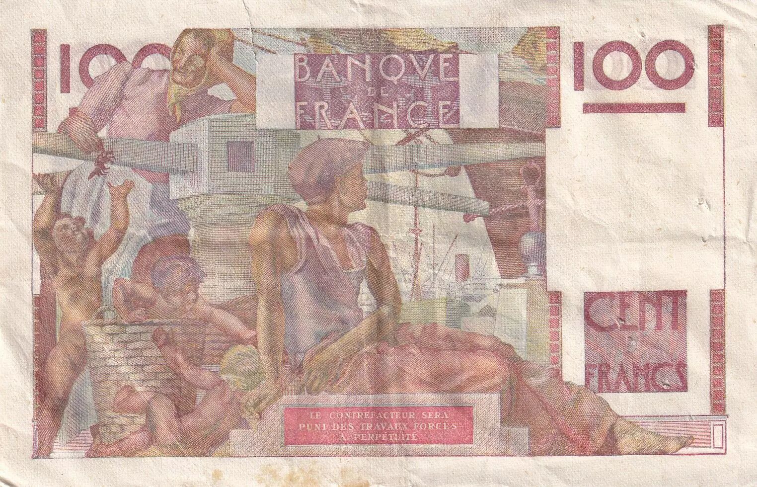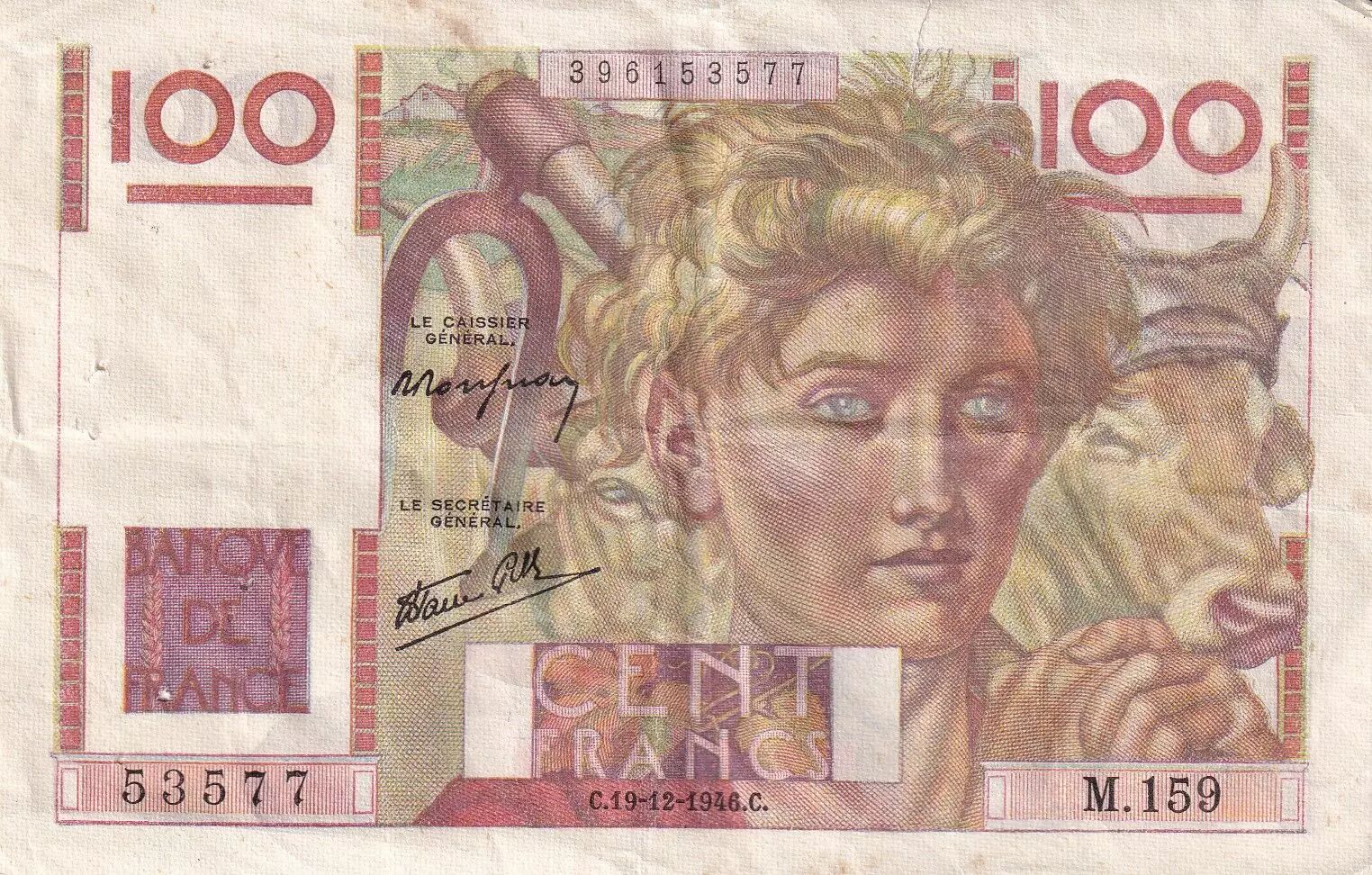 Banknote France 100 Francs, Young Farmer - 19-12-1946 - Serial M.159