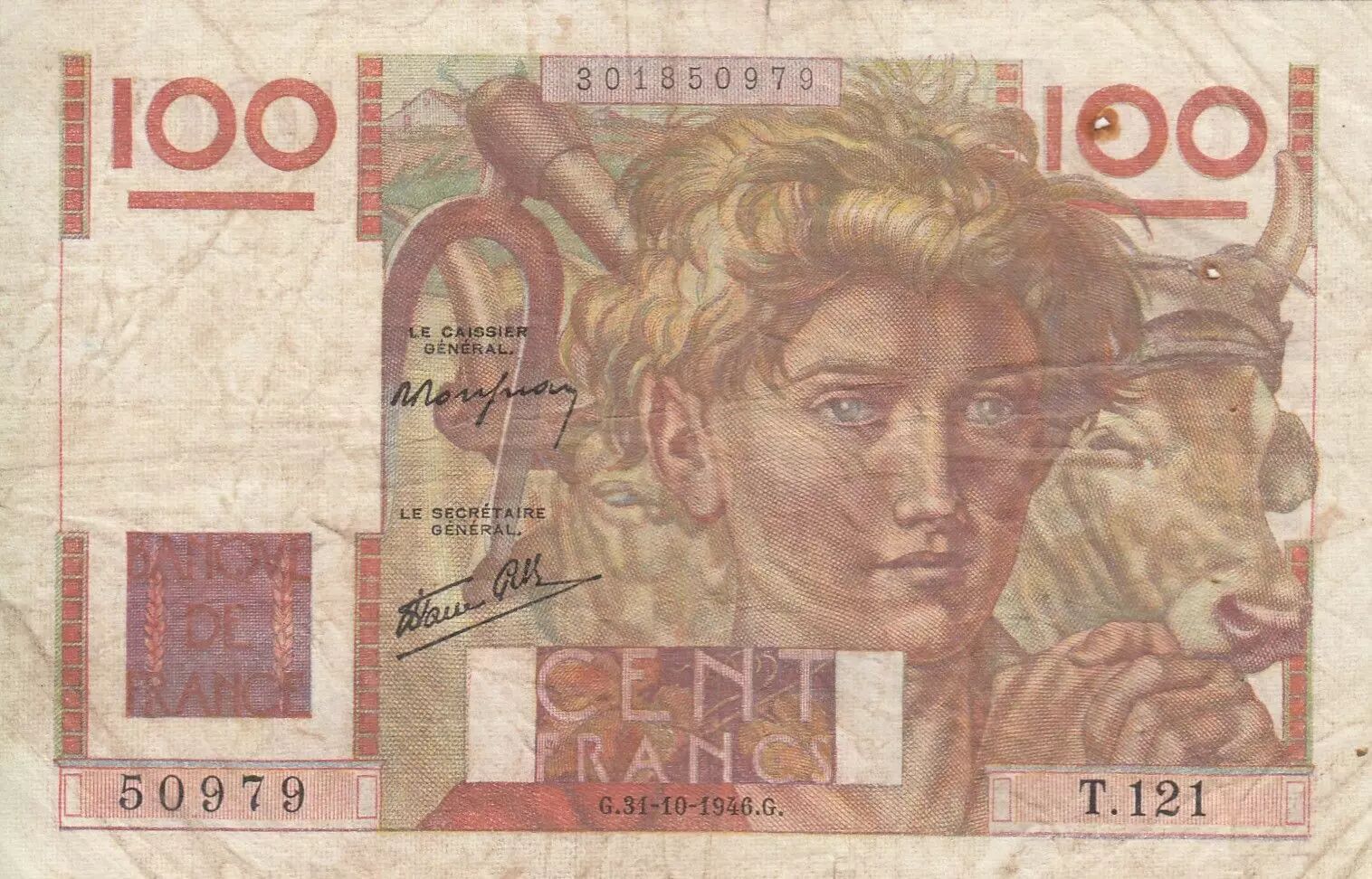 Home > > France 100 Francs - Young farmer - 31-10-1946 - Serial T.121