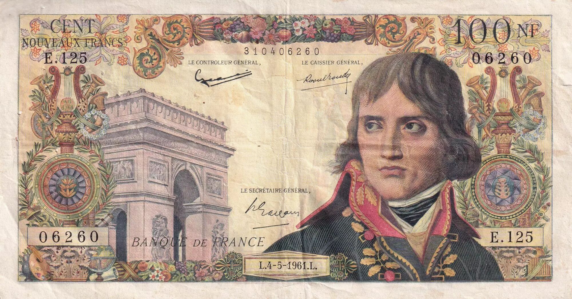Home > > France 100 NF - Bonaparte - 04-05-1961 - Serial E.125 - P.144