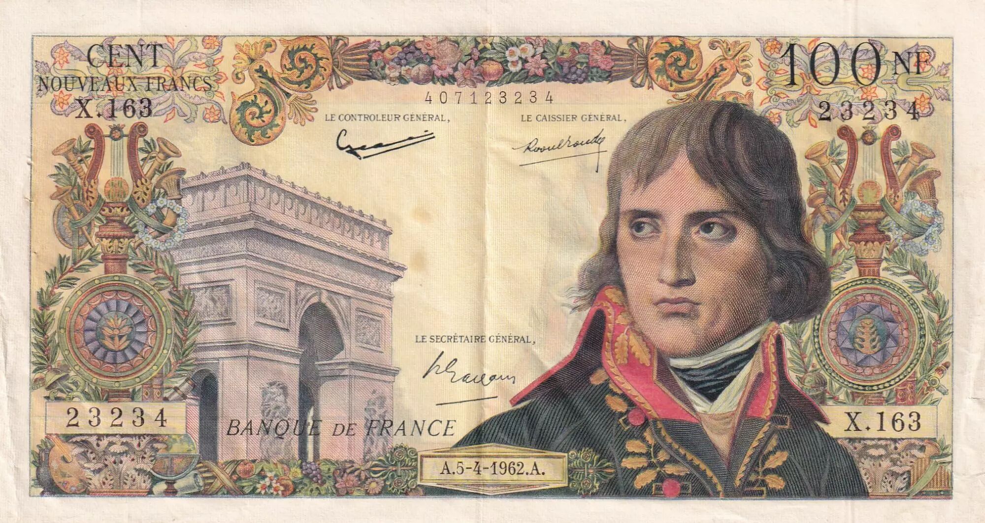 Banknote France 100 NF Bonaparte - 05-04-1962 - Serial X.163