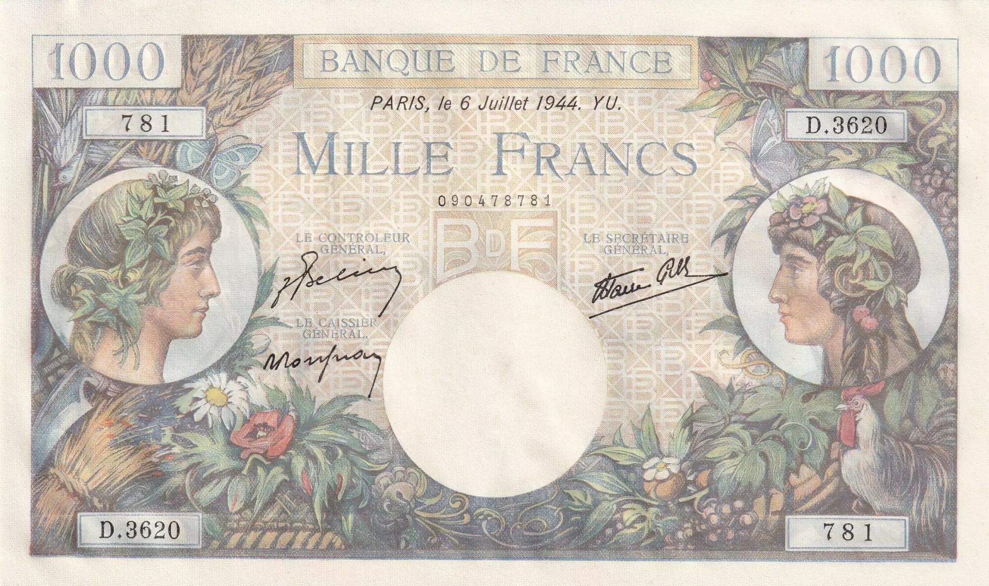 Banknote France 1000 Francs - 06-07-1944 - D.3620 - P.96c - UNC
