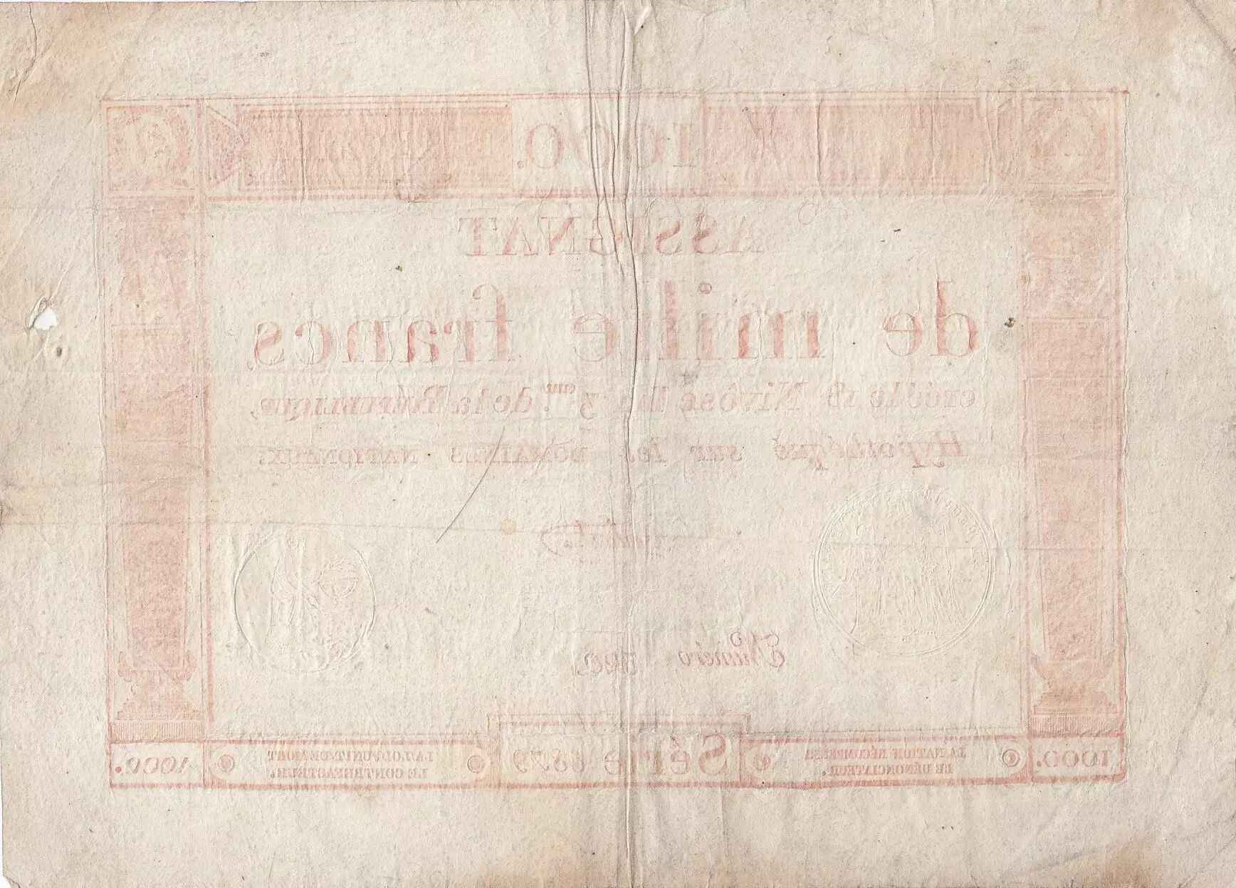 Banknote France 1000 Francs 18 Nivose An III - 7.1.1795 - Sign. Bertaut - F to VF