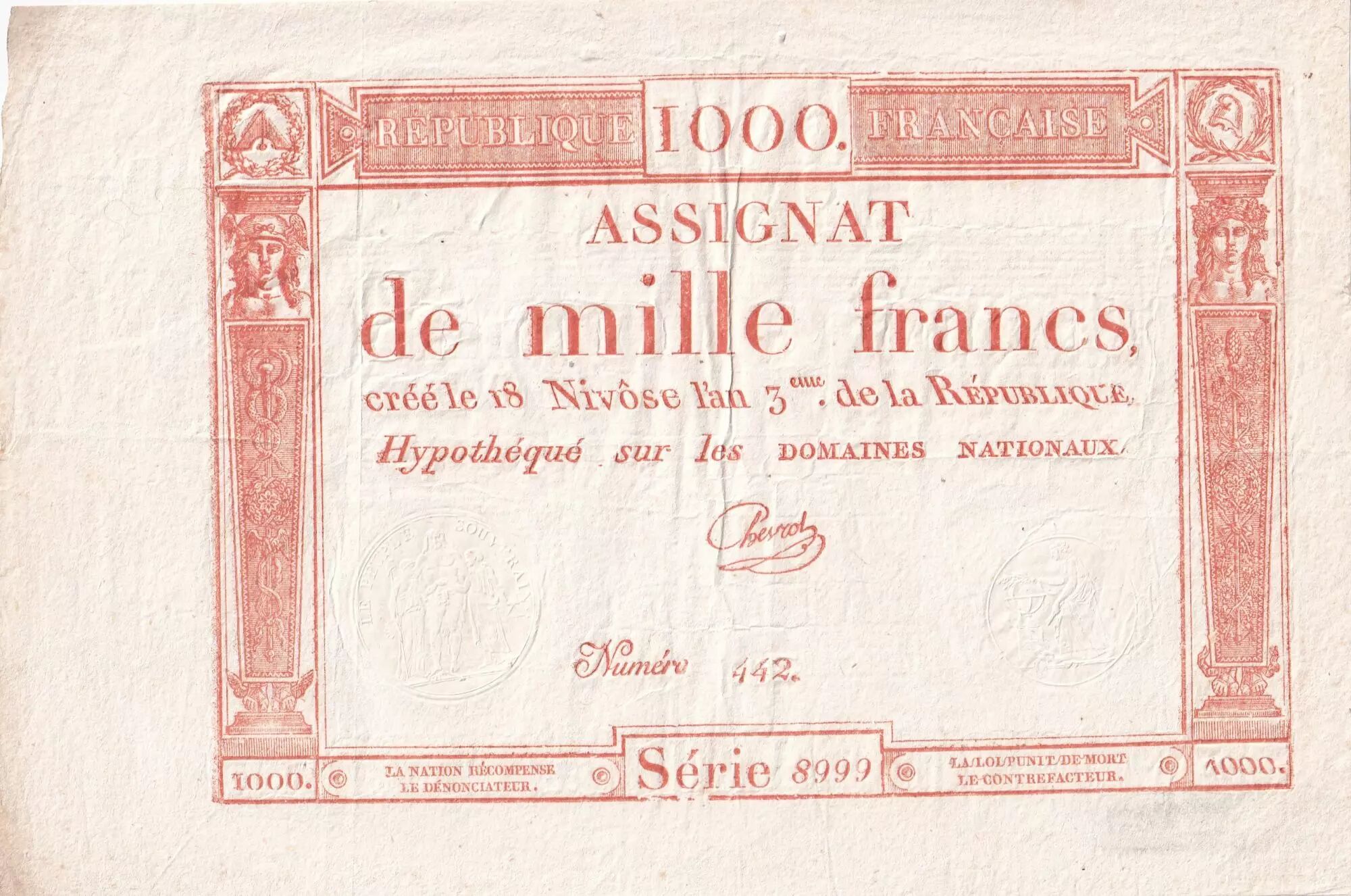 Accueil > Archivage > France 1000 Francs 18 Nivose An III (7.1.1795) - Sign. Chevrot