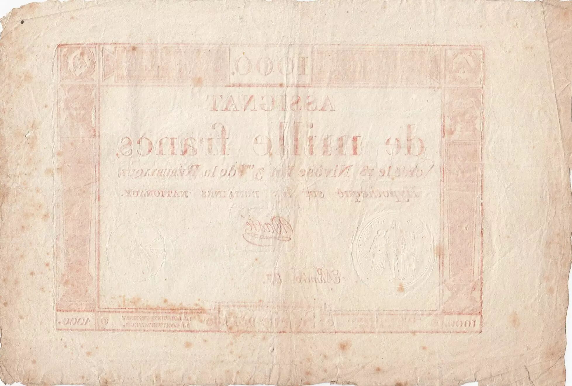 Accueil > Archivage > France 1000 Francs 18 Nivose An III - 7.1.1795 - Sign. Massé - TTB