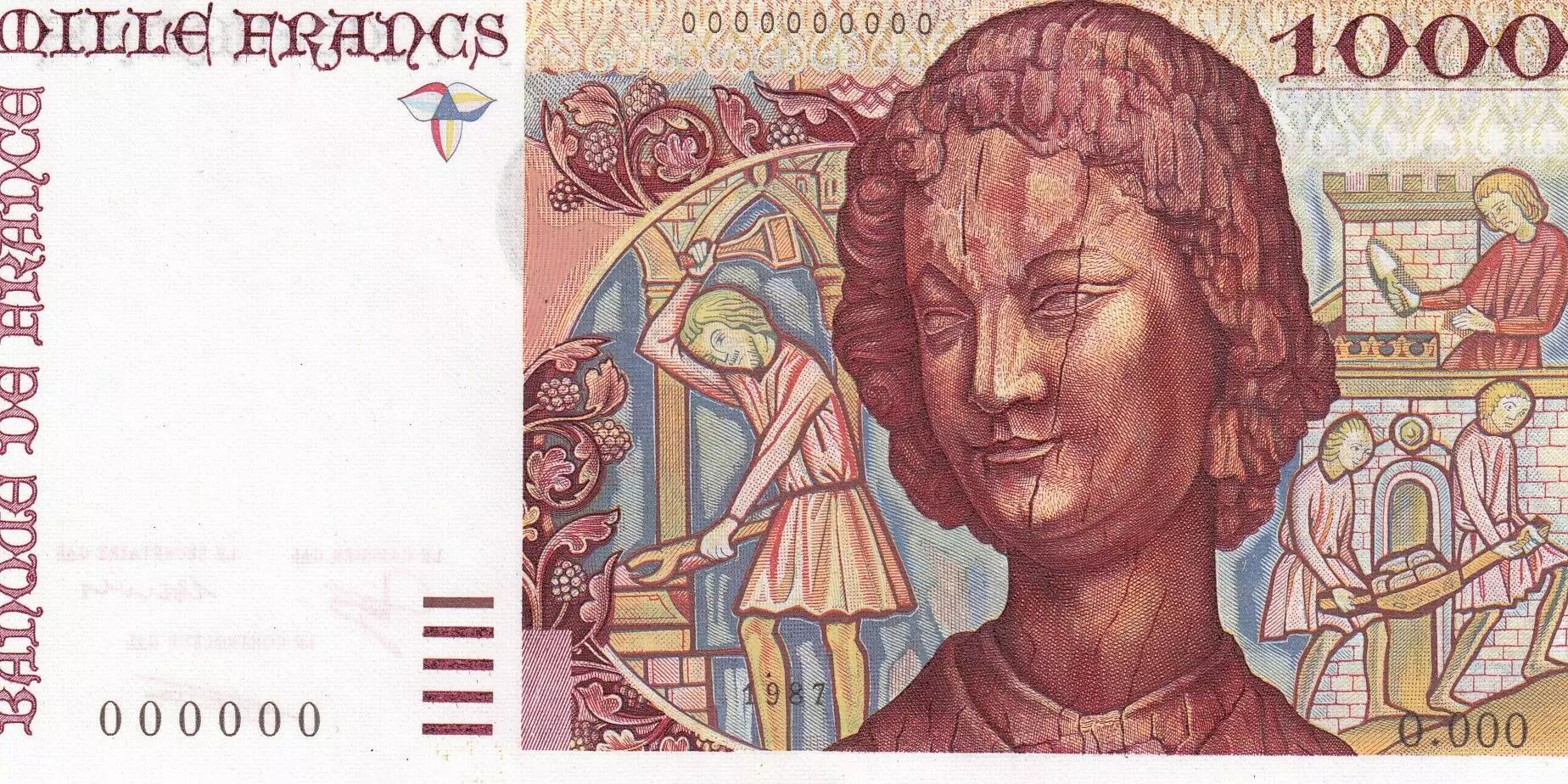 Rare proof of 1000 Francs Medieval Art by Pierrette Lambert