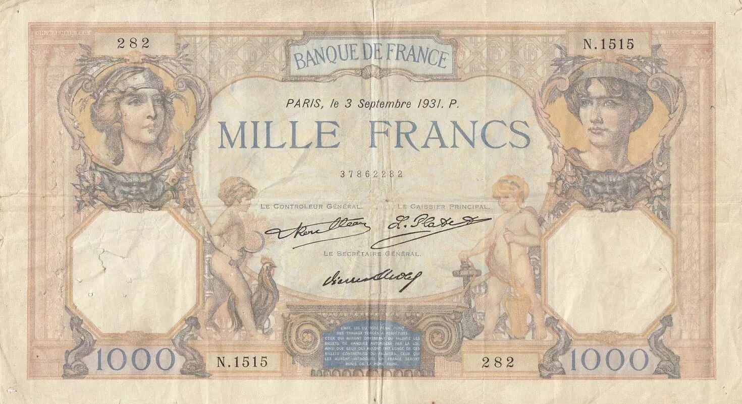 Banknote France 1000 Francs Ceres and Mercury - 03-09-1931 - Serial N.1515