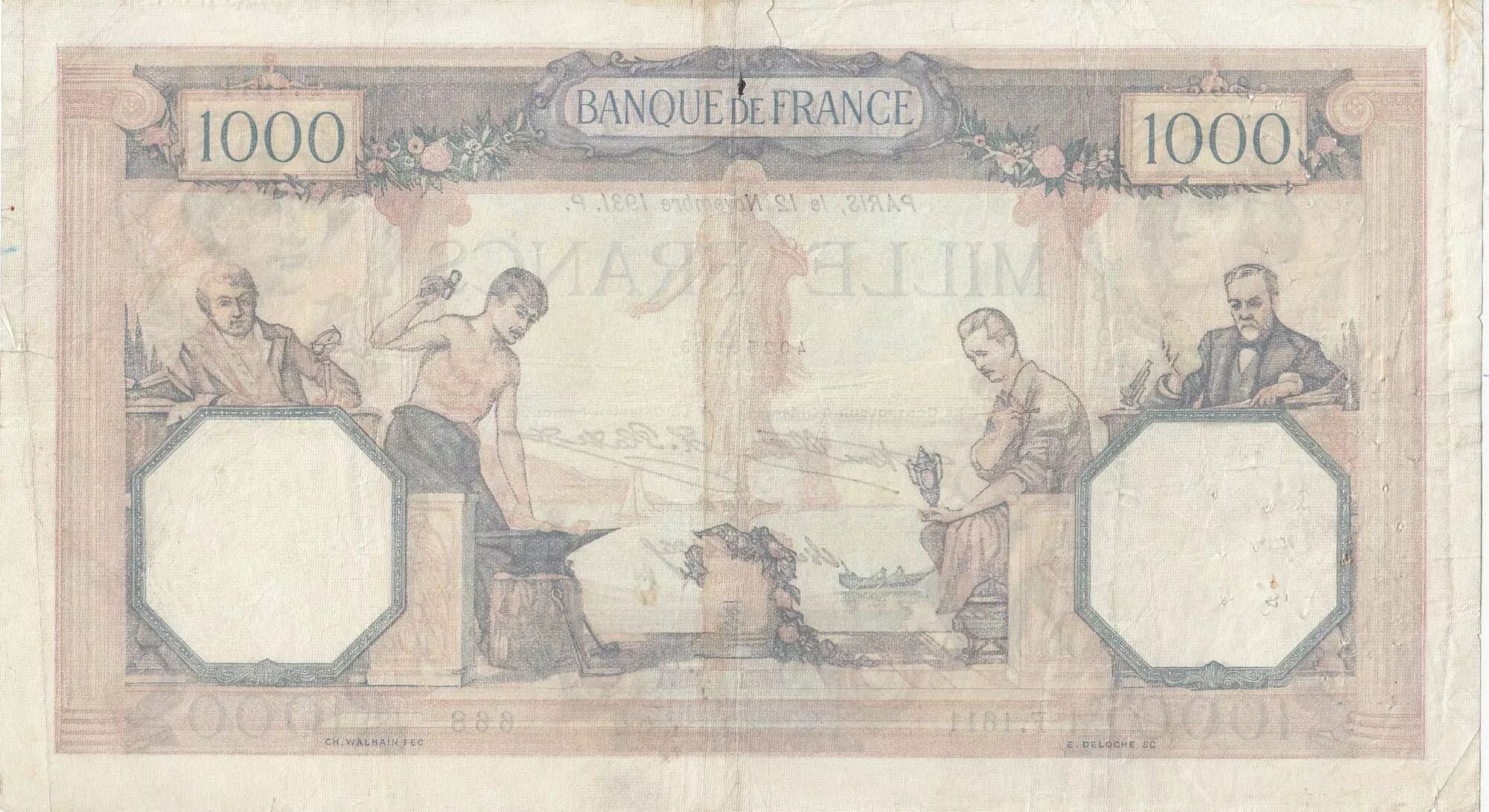 Banknote France 1000 Francs Ceres and Mercury - 12-11-1931 - Serial F.1611